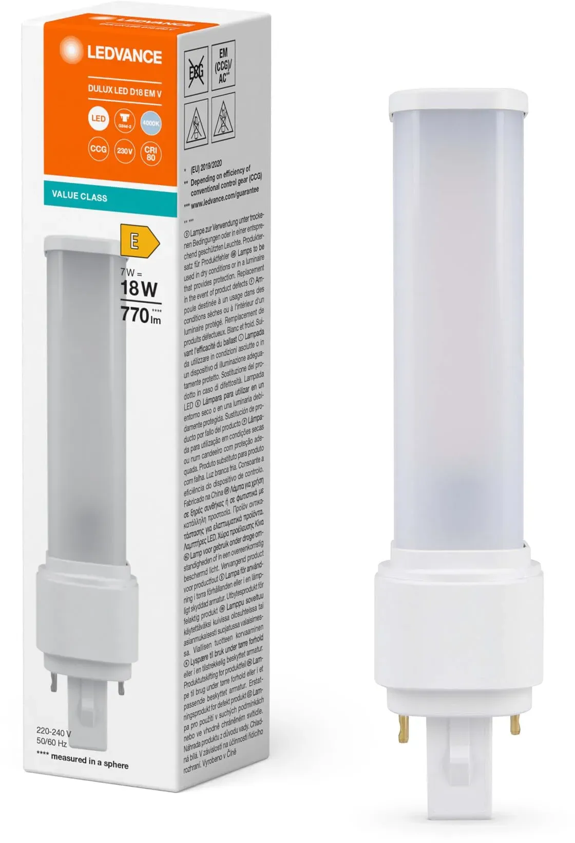 sofort lieferbar, 1-3 Tage in DELedvance DULUX LED D Leuchtmittel EM & AC MAINS V 7W 840 G24D-2 - 770 lm
