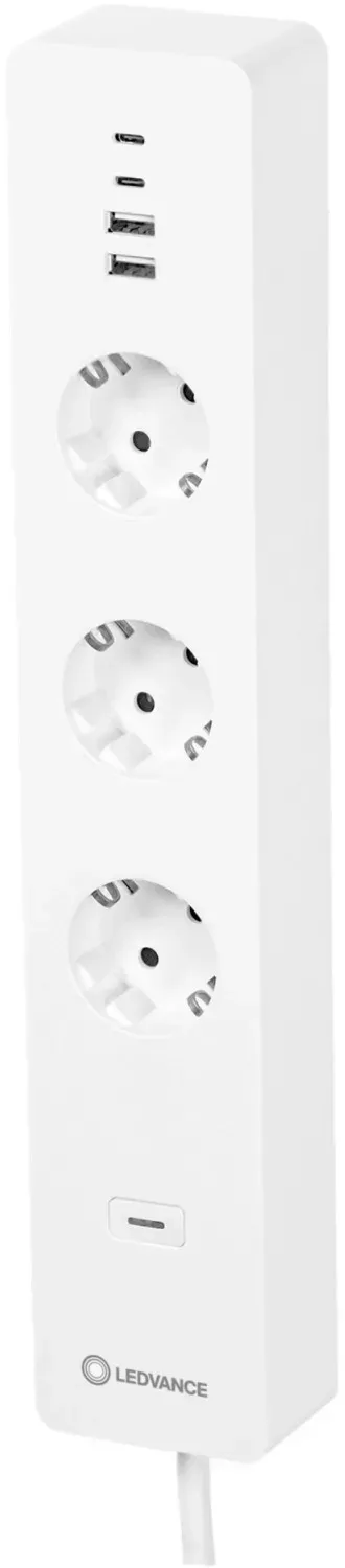 Kategorie: Steckdosen - LEDVANCE - GTIN:4058075594784 - Smarte WiFi 3-fach Steckdosenleiste mit smarten USB Anschlüssen Produkteigenschaften: Steuerung über LEDVANCE SMART+ WiFi App (ab Android 4:4 oder ab iOS 9:0) oder über WiFi Fernbedienung möglich Steuerung über Google Assistant oder Amazon Alexa möglich Smarte 3-fach Steckdosenleiste mit 4 smarten USB Anschlüssen (je zwei Typ A und C) Jede Steckdose ist individuell steuerbar und die USB Buchsen sind als eine Gruppe gesteuert Energiezähler Zeitplanung 1,5 m Netzkabel für flexible Installation Hohe Schaltleistung bis zu 3.680 W / 16 A Produktvorteile: Smarte Steckdosenleiste Einfache Ansteuerung verschiedener Geräte über smarte Steckdosen und smarte USB Anschlüsse Hoher Sicherheitsstandard überlastschutz, überspannungsschutz Energiezähler überwacht den Energieverbrauch der angeschlossenen Geräte und verfolgt den Energieverbrauch Integriert konventionelle Elektrogeräte in kompatible Smart-Home-Systeme Ermöglicht das Schalten von herkömmlichen Leuchtmitteln und anderen elektrischen Geräten Anwendungsgebiete: Wo immer nicht-smarte Geräte in ein kompatibles Smart-Home-System integriert werden sollen USB Anschlüsse zur Stromversorgung - 39,99 Euro bei OBI - gefunden von billiger.de Dieses 4er-Pack bietet smarte AuÃ?ensteckdosen mit WiFi-Technologie und Stromverbrauchsmessung zu einem guten Preis-Leistungs-Verhältnis. ![]() ![]() LEDVANCE SMART+ Schaltbare Steckdose für Aussen mit WiFi-Technologie, mit Strom Vermessung, Kompatibel mit Google und Alexa Voice Control, Steuerung per Fernbedienung möglich, 4er-Pack