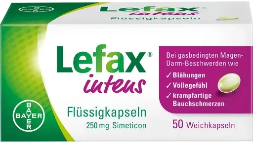 Sofort lieferbar, 1-2 Werktage (versandfertig)Bayer LEFAX intens Flüssigkapseln 250 mg Simeticon 50 St