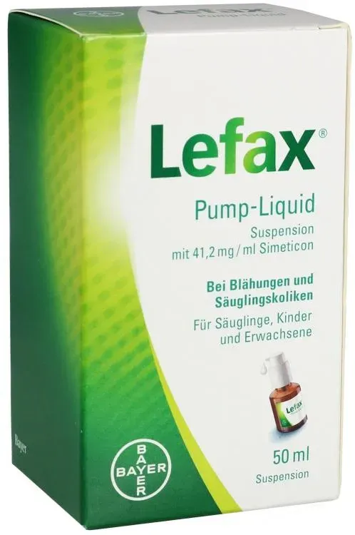 23 Händlerangebote bei billiger.de - Kategorie: Arzneimittel - Bayer - Anwendungsgebiet von Lefax Pump-Liquid SuspensionDas Präparat ist ein entschäumend wirkendes Arzneimittel.Es wird angewendet:bei übermäßiger Gasbildung und Gasansammlung im Magen-Darm-Bereich (Meteorismus)mit gastrointestinalen Beschwerden wie Blähungen, Völlegefühl und Spannungsgefühl im Oberbauch.zur symptomatischen Behandlung bei Säuglingskolik (3-Monats-Kolik).bei verstärkter Gasbildung nach Operationen.zur Vorbereitung diagnostischer Untersuchungen im Bauchbereich zur Reduzierung von Gasschatten (Sonographie, Röntgen).als Sofortmaßnahme bei Vergiftungen mit Flüssigseifen (Tensiden). Lefax Pump-Liquid Suspension - Bei Blähungen Baby, Kinder und Erwachsene. Lefax Pump-Liquid Suspension ist ideal geeignet für Blähungen bei Babys, die Luftbläschen im Bauch lösen sich zuverlässig und beschwerdefrei auf. Lefax Pump-Liquid Suspension ist nicht nur für Säuglinge interessant, auch Kinder und Erwachsene profitieren von der unkomplizierten Darreichungsform. Wirkungsweise von Lefax Pump-Liquid SuspensionDer in den Lefax -Produkten enthaltene Wirkstoff Simeticon wirkt vor Ort im Darm und das rein physikalisch. Er wird also nicht vom Körper aufgenommen, sondern verlässt ihn wieder unverändert. Lefax Pump-Liquid lässt den Schaum zerfallen, der bei der Verdauung im Darm entsteht und für die Beschwerden verantwortlich ist. So kann die freigesetzte Luft durch ein Bäuerchen oder über den Enddarm den Babybauch wieder ... Dieses Angebot ist ideal für den Einstieg oder gelegentlichen Gebrauch, da es eine kleine Packungsgröße zu einem sehr günstigen Preis bietet. Medikament e- per- klick.de Lefax R intens Mikro Granulat bei gasbedingten Beschwerden 20 St