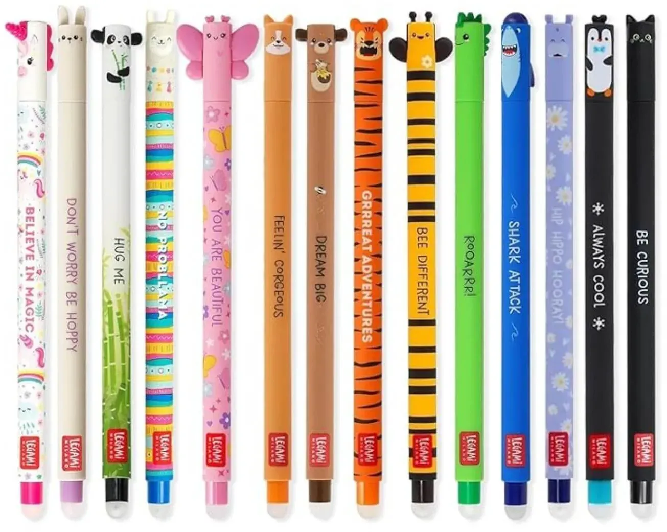 Auf Lager Versand durch AmazonLEGAMI Set mit 14 radierbaren Gelstiften mit thermoempfindlicher Radiertinte, verschiedene Tintenfarben und Schaftdesigns, 0,7 mm Spitze, Tierdesigns, Panda, Hase, Einhorn usw