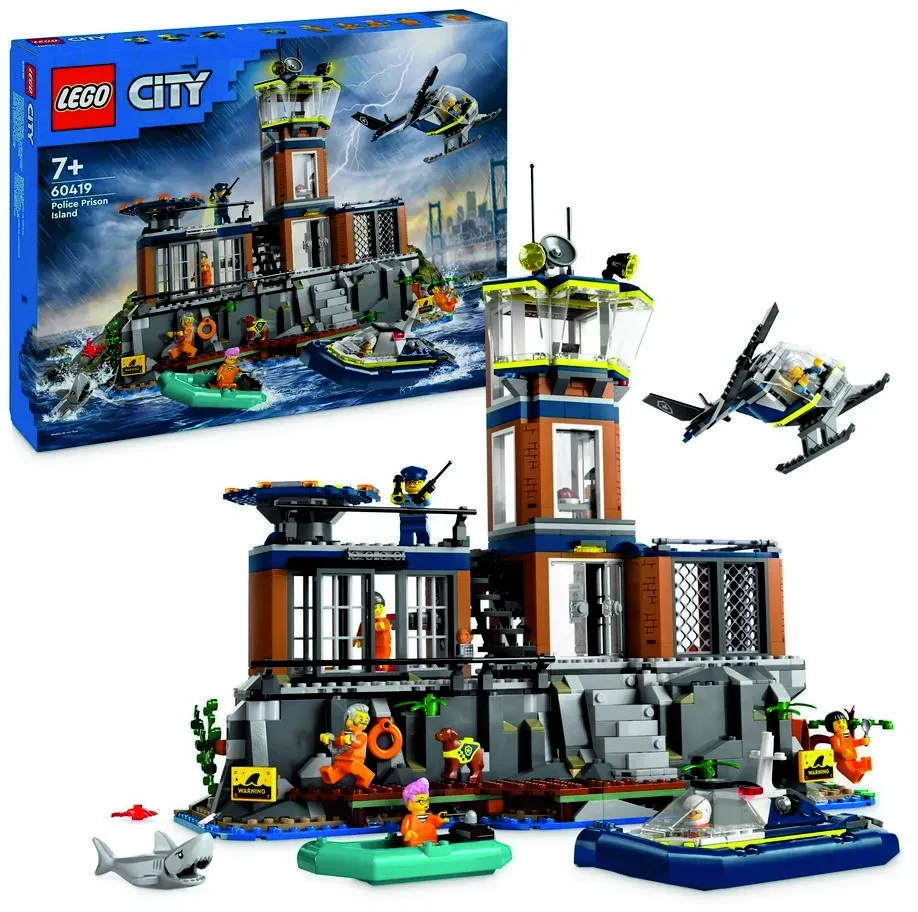 Auf Lager Versand durch AmazonLEGO City Polizeistation auf der Gefängnisinsel, Polizei-Spielzeug mit Hubschrauber, Boot und Hai, Set mit 7 Minifiguren und Hund, Geschenk zum Geburtstag für Jungen und Mädchen ab 7 Jahren 60419
