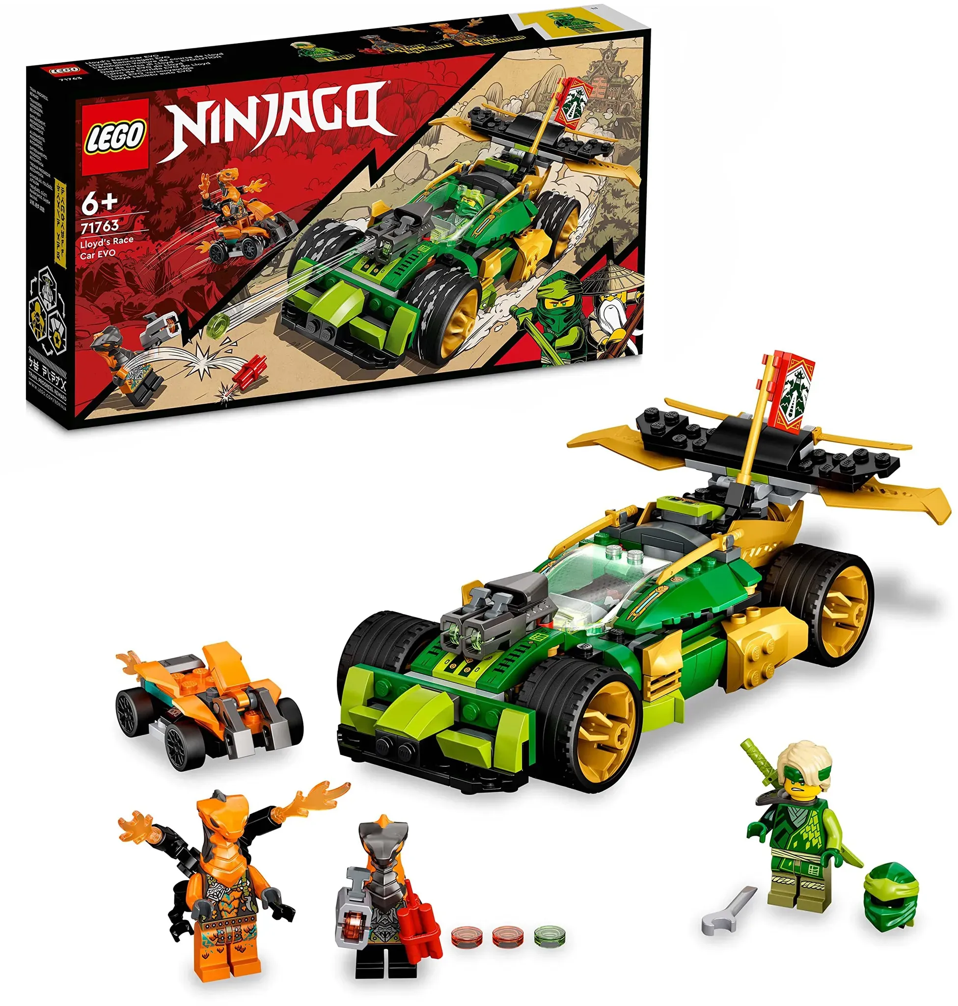 Zustand: Neu - Bauspielzeugsets - LEGO - 71763 - EAN: 5702017117232 - Enthält ein 3-in-1 NINJAGO Rennauto, das zu 3 verschiedenen Modellen aufgerüstet werden kann, sowie 3 coole LEGO NINJAGO Figuren mit Waffen Verwandle das Rennauto-Spielzeug von einem Buggy in ein leistungsstarkes, schnelles Panzerfahrzeug mit goldenen Seitenteilen, 2 Geschützen und Klingen-Spoilern Die Kinder können Lloyds Auto von LEGO NINJAGO in 3 Stufen von einem Buggy in ein gepanzertes Rennauto umbauen, das bereit für den Kampf gegen die bösen Schlangenkrieger ist Enthält Lloyd von NINJAGO mit einem Schwert, einen Kobra-Mech mit Flammenwerfer auf einem Quad und Dynamit-Python mit einer Pistole und einer Stange Dynamit Wenn die Kinder ihre Missionen erfüllen und die Schlangen besiegen, werden sie mit einem Anpassbarkeitsbanner belohnt, mit dem sie das Spielzeugauto schmücken können Halte Ausschau nach weiteren Bannern in den 7 anderen LEGO NINJAGO Sets, darunter Kais Donnerdrache EVO (71760), Zanes Power-Up-Mech EVO (71761) und Kais Feuerdrache EVO (71762) Das LEGO NINJAGO Modell von Lloyds Rennauto kann in 3 schnellen Schritten umgebaut werden und ist ein tolles Geburtstagsgeschenk für Kinder ab n, die Spielzeugautos lieben - 26 Händler im amazon.de Marketplace Ein solides Angebot für Neuware von einem Amazon Marketplace Händler, das eine gute Verfügbarkeit signalisiert. ![]() ![]() LEGO 71763 NINJAGO Lloyds Rennwagen EVO, Auto-Spielzeug ab 6 Jahren mit Rennauto und Schlangen-Figuren