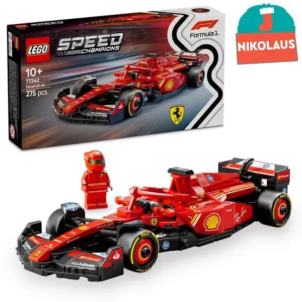 Lego 77242 META PreisvergleichMit dem Meta-Preisvergleich suchen Sie gleichzeitig bei den großen Preisvergleich Portalen!Jetzt live Suche nach lego 77242 starten! Lego 77242 KaufberatungDas LEGO Set 77242 Ferrari SF-24 F1 Rennauto aus der Speed Champions Reihe ist ein detailreiches Modell mit 275 Teilen, geeignet für Kinder ab 10 Jahren und auch für erwachsene Sammler interessant[1][3][9]. Es stellt den Ferrari Boliden der Formel-1-Saison 2024 dar und bietet Features wie ein aufklappbares Cockpit mit Halo-Bügel, Heckflügel, Sponsorenaufkleber und breitere Hinterreifen mit Pirelli-Aufdruck. Eine Rennfahrer-Minifigur im Ferrari-Rennoverall ist ebenfalls enthalten[1][3][7]. Wichtige Produktmerkmale und Beliebtheit: