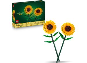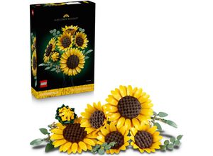 Spiele Spielzeug Lifestyle - - Die LEGO Botanicals Sonnenblumen (11502) lassen dich deine Kreativität ausleben. Dieses LEGO Bauset für Erwachsene beinhaltet 6 unterschiedlich weit geöffnete Sonnenblumen. Freu dich darauf, 1 Sonnenblumenknospe, 3 Sonnenblumen, die gerade erst aufgehen, und 2 große voll geöffnete Sonnenblumen sowie 4 Eukalyptuszweige zu bauen. Diese LEGO Blumen sehen besonders echt aus. Die Blütenblätter und Stängel der Kunstpflanzen lassen sich anpassen, damit Blumenfans den Strauß ganz individuell gestalten und dann ausstellen können. Die Sonnenblumen können aber auch mit anderen separat erhältlichen LEGO Botanicals Sets zu einer größeren Blumendeko kombiniert werden. Sonnenblumen wirken besonders positiv und stehen für Liebe und Glück. Das macht dieses LEGO 3D Puzzle zu einer tollen Aufmerksamkeit, über die sich erwachsene Blumenfans zu besonderen Anlässen wie dem Valentinstag, dem Muttertag oder einer Einweihungsparty freuen werden. Die Bauanleitung zu dem Set ist auch in der LEGO Builder App verfügbar. Dort können Baufans 3D Modelle drehen und sich anschauen, wie weit sie mit ihrem Modell schon sind. Das Kunstblumen Set besteht aus 686 Teilen. Die Sonnenblumen sind unterschiedlich groß. Die beiden Blumen mit den voll geöffneten Blüten sind 36 cm hoch Enthält 686 Teile, Material: Material: Kunststoff, Hinweise: Warnhinweise: Achtung! Nicht geeignet für Kinder unter 36 Monate. Enthält verschluckbare Kleinteile. Erstickungsgefahr., Altersempfehlung: für ... Der Rosa Rosenstrauß für 46.99 Euro ist eine romantische und detailreiche Option, die als Topseller hervorsticht. ![]() ![]() Konstruktionsspielsteine LEGO 'Rosa Rosenstrauß (10374), LEGO Botanicals', rosa, Spielbausteine, Kinder, Kunststoff, Konstruktionsspielsteine, Blumen, Made in Europe, Topseller