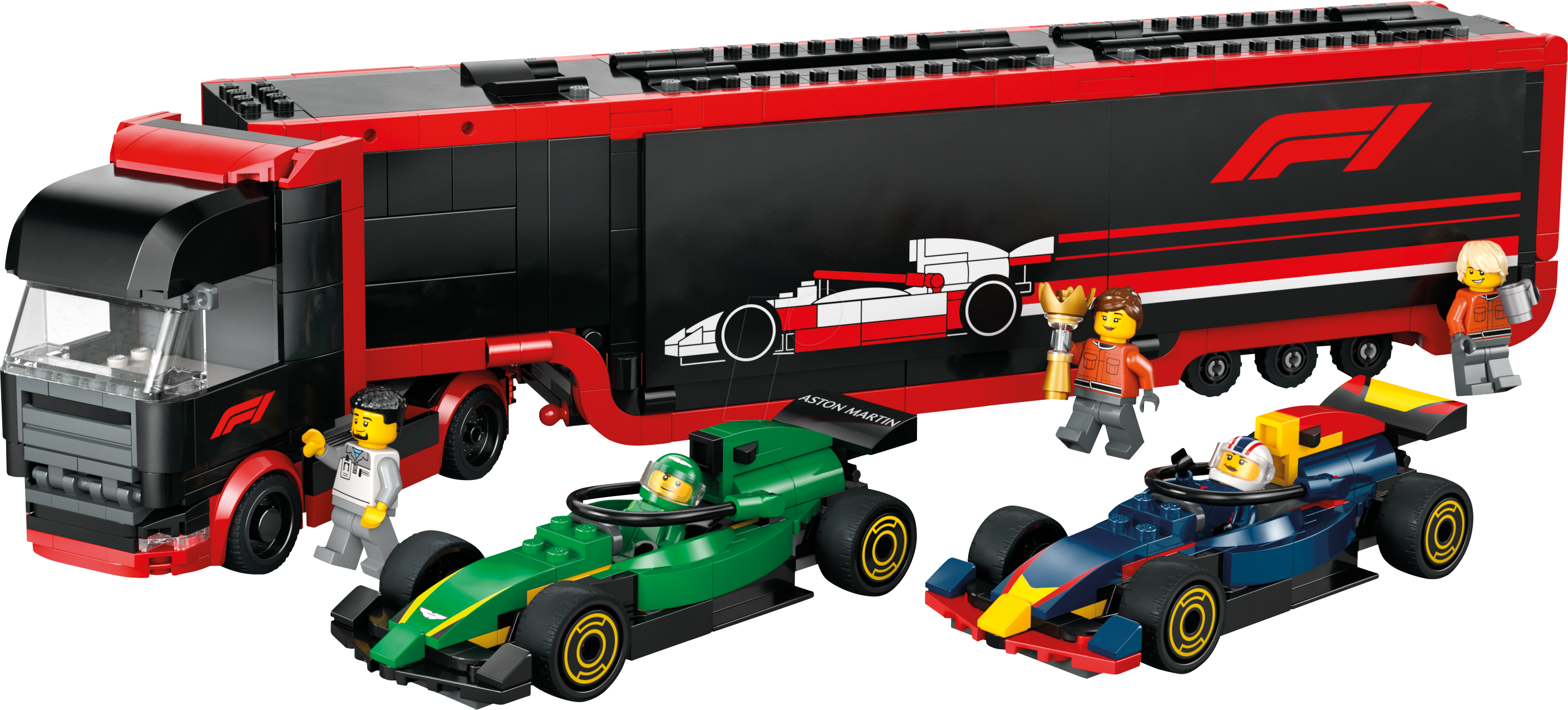 Auf Lager Versand durch AmazonLEGO City F1 Transporter mit RB20 & AMR24 F1 Rennautos - Spielzeug Autotransporter für Red Bull & Aston Martin Formel 1 Teams - Inkl. 5 Minifiguren - Geschenk für Jungen & Mädchen ab 8 Jahren 60445