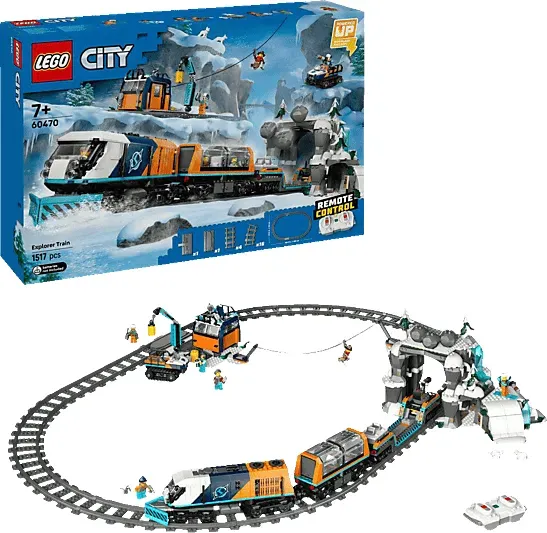 Auf Lager Versand durch AmazonLEGO City Trains Arktis-Polarexpress - Spielzeug mit ferngesteuertem Zug - Schneepflug, 22 Gleissegmente, 6 Minifiguren & Felssturz-Funktion ? Geschenk für Jungen & Mädchen ab 7 Jahren - 60470