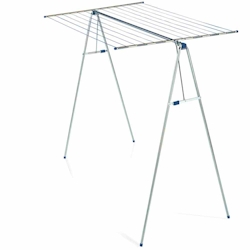 13 Händlerangebote bei billiger.de - Kategorie: Wäscheständer - Leifheit - Ein ungewöhnliches Allroundtalent rund um die Wäschepflege €“ das ist der Leifheit Standtrockner Star. Mit seiner Höhe und Breite von jeweils 1,50 Meter eignet er sich gut für große und lange Wäschestücke wie Bettwäsche, Hosen oder Badehandtücher, die nun endlich nicht mehr bis zum Boden reichen. Das Besondere am Leifheit Star ist: Der Leinenaufsatz, der mit 21 Meter Leinenlänge dem Inhalt von mehr als zwei Waschmaschinenfüllungen Platz bietet, ist abnehmbar. Entfernt man ihn, hat man im Handumdrehen einen praktischen Garderobenständer oder eine Vorrichtung, mit der sich auf dem Balkon wunderbar die Kleidung auslüften lässt. Der Leifheit Star ist schnell auf- und abgebaut. Mit seiner automatischen Arretierung steht er auch voll beladen sicher und stabil. Wird er nicht gebraucht, passt er schmal zusammengeklappt in jede Nische. - GTIN:4006501727060 ![]() ![]() Leifheit Flügelwäschetrockner Linomaxx 210 Hochtrockner