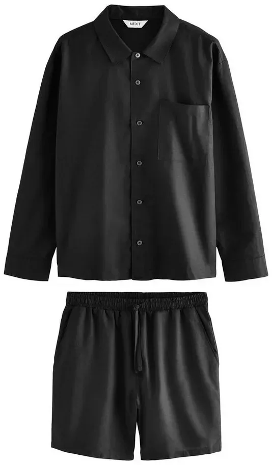 lieferbar-in 2-3 Werktagen bei dirNext Pyjama Kurzer Schlafanzug aus Leinen-Baumwollmix (2 tlg) schwarz XXXL