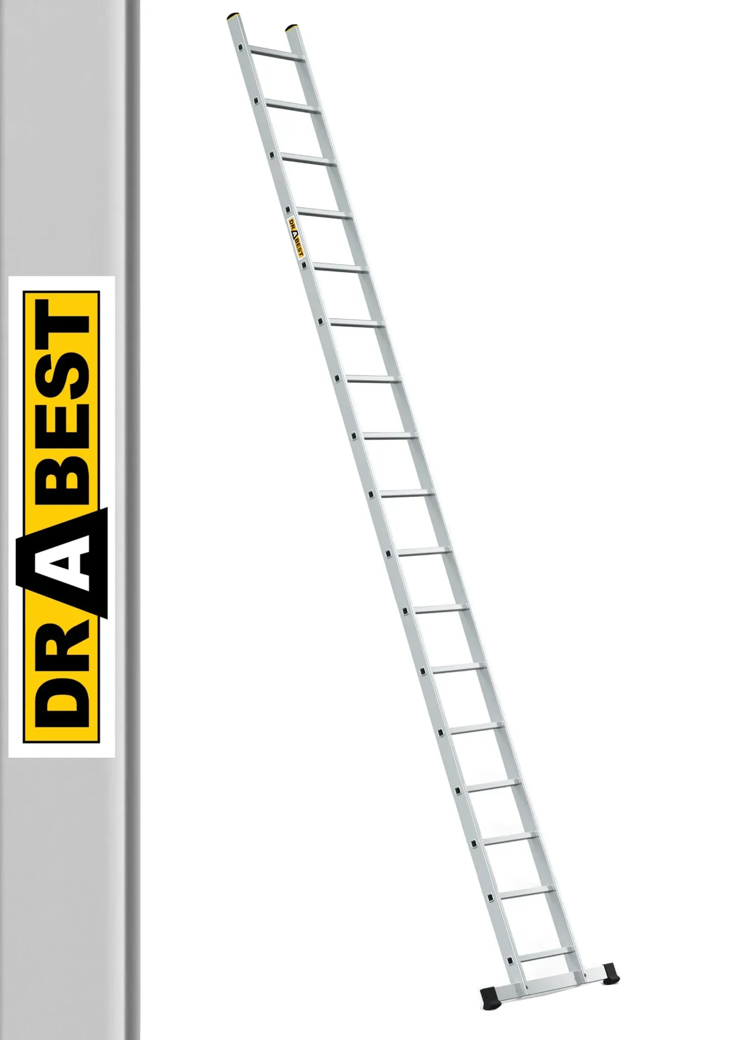 Kategorie: Leitern - Drabest - GTIN:5904680191001 - STABILE LEITER eine leichte und sichere Anlegeleiter, konform mit der Norm EN 131. Erfüllt strenge Sicherheits- und Qualitätsanforderungen, Tragfähigkeit bis zu 150 kg, ideal für Haus, Arbeit und Garten. LEICHT UND ROBUST Aluminiumkonstruktion mit breiten Stufen, rt Sicherheit bei intensiver Arbeit in der Höhe. Die Sprossen sind mit Prägungstechnologie verbunden. EINFACH UNZERSTöRBAR DRABEST-Leiter aus Aluminium, widerstandsfähig gegen Witterungseinflüsse. Die rutschfeste, geriffelte Oberfläche der Stufen sorgt für Sicherheit und Stabilität. NEUE GUMMIFüSSE Rutschfeste Füße mit einer zusätzlichen Schicht aus hochwertigem Gummi sorgen für Sicherheit und Stabilität auf verschiedenen Oberflächen und schützen den Boden vor Kratzern. HERGESTELLT IN POLEN 9 Stufen, Arbeitshöhe bis zu 3,46 m, Breite 40 cm, Gewicht 3,7 kg. Profilquerschnitt: 50 x 20 mm, Sprossenprofil: 25 x 25 mm, maximale Höhe: 2,45 m. - 85,90 Euro bei Amazon Marketplace Home - gefunden von billiger.de Diese Anlegeleiter mit 17 Stufen und integrierten Leiterhaken ist eine professionelle und sichere Lösung für anspruchsvolle Arbeiten. ![]() ![]() DRABEST PRO Serie Anlegeleiter Aluminium-Stufenleiter - 17 Stufen - mit Leiterhaken - Tragfähigkeit 150 kg - Anti-Rutsch-Füße, Leichtes Gewicht, korrosionsbeständig - EN131