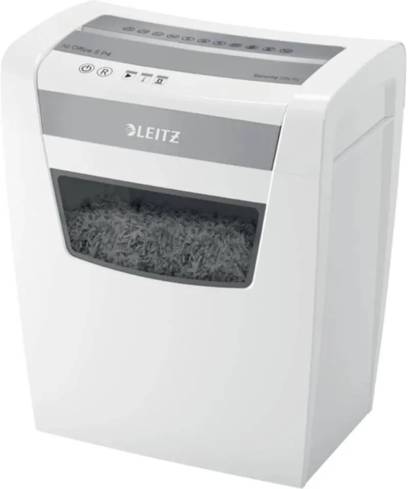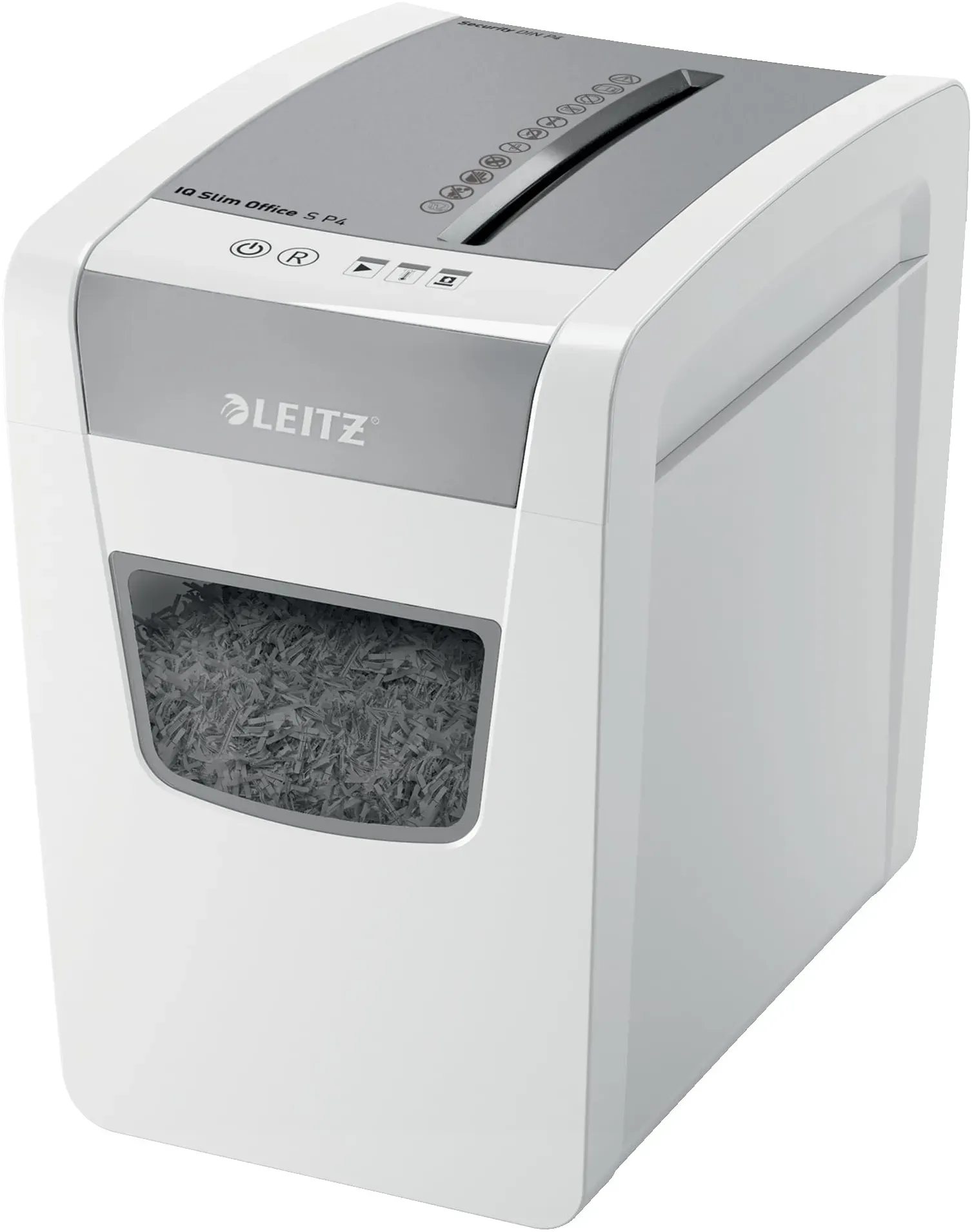 keine Angabe keine Angabe in_stockAKTION: LEITZ IQ Office S Aktenvernichter mit Partikelschnitt P-4, 4 x 28 mm, bis 12 Blatt, weiß mit 15 Euro CashBack