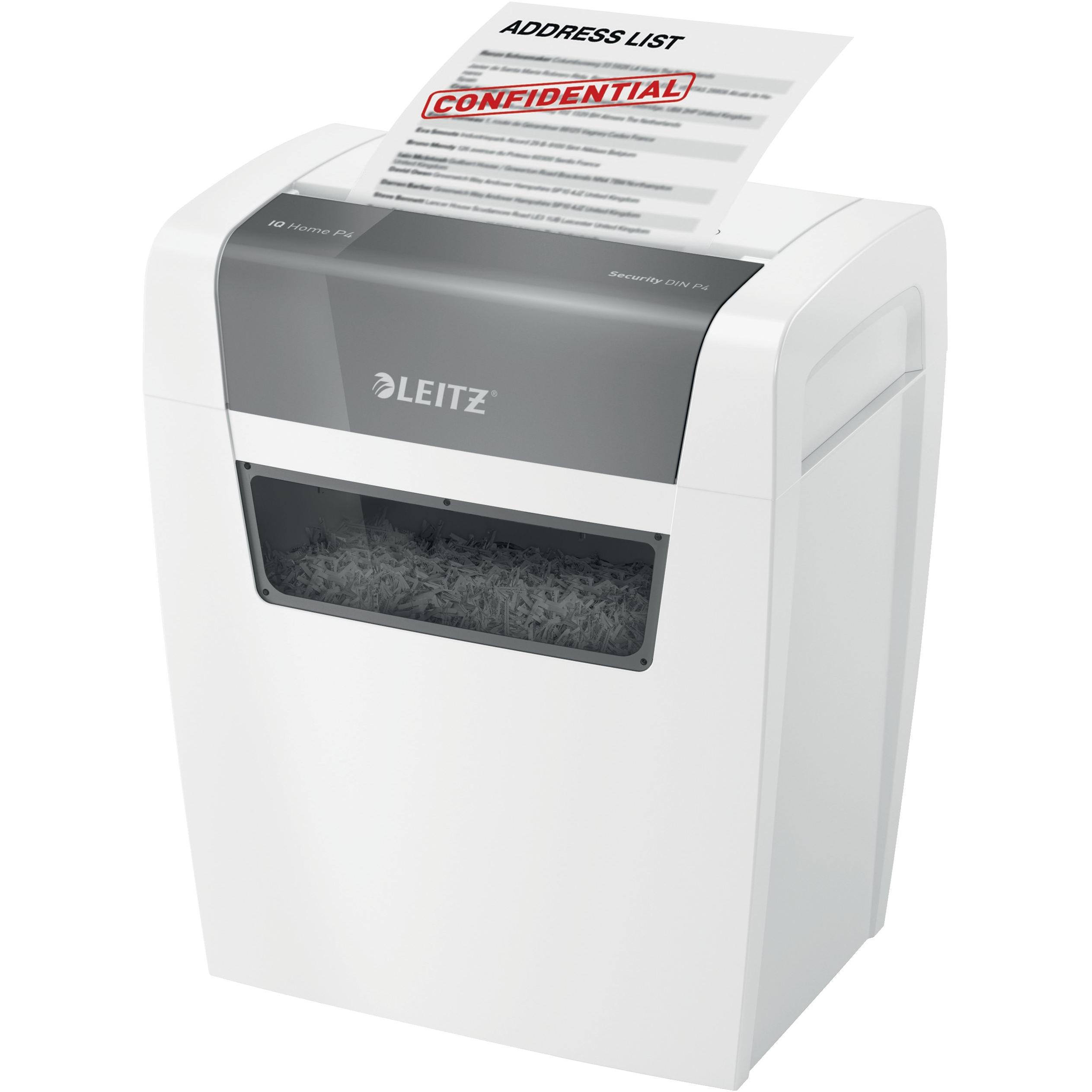 Leitz - EAN: 04002432118939 - Betreiben Sie gewissenhaften Datenschutz LEITZ Aktenvernichter mit Partikelschnitt IQ Home OfficeFalls Sie auf der Suche nach einem Gerät mit hoher Datensicherheit sind, dann würden Ihnen unsere Kunden den LEITZ Aktenvernichter mit Partikelschnitt IQ Home Office empfehlen. Er ist nämlich in unserem Shop innerhalb der Sicherheitsklasse P4 einer der 5 meistverkauften Aktenvernichter.Welche Sicherheitsstufe hat das Modell?Das Gerät erfüllt die hohe Sicherheitsstufe P-4 nach DIN 66399 und bietet damit ein fortschrittliches Schutzniveau für moderne Arbeitsumgebungen. Dank dieser Klassifizierung eignet sich das Exemplar ideal für die zuverlässige, datenschutzkonforme Vernichtung sensibler Dokumente, z. B. Personalakten oder Verträge.Der perfekte Partner fürs HomeofficePro Durchgang kann das kraftvolle Exemplar bis zu 10 Blatt mit einem Papiergewicht von jeweils 80 g/qm vernichten. Für eine leichte Entsorgung der Papierreste sorgt der 23,0 l große Auffangbehälter. Er ist nicht besonders groß, weshalb das Gerät insgesamt auch kompakte und handliche Maße besitzt. Mit seiner Leistung und seinem Auffangvolumen eignet sich das Gerät besonders gut für kleine Büros mit 1-2 Personen, für den privaten Gebrauch oder das Homeoffice.Womit kann der Partikelschnitt punkten?Die Unterlagen werden sowohl längs als auch quer geschnitten, was eine hohe Datensicherheit mit sich bringt. Der Partikelschnitt eignet sich daher für die Vernichtung sensibler Daten besser als ... Dieser Aktenvernichter für 84.28 Euro bietet eine gute Schnittleistung und ein ausreichend großes Auffangvolumen für das Home Office. ![]() ![]() Leitz IQ Aktenvernichter »Home Office P4« Partikelschnitt bis 10 Blatt weiß, 22x42x23.8 cm