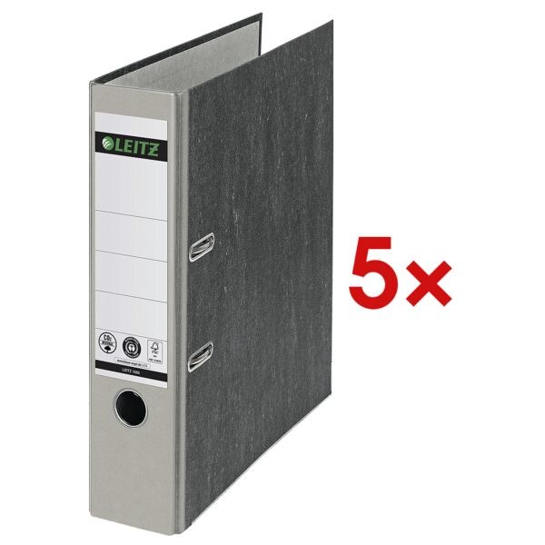 Kategorie: Ordner - Leitz - GTIN:4002432376506 - Größere Papiermengen können problemlos eingefüllt werden und eine Ablage ist jetzt auch auf der linken Seite möglich. denn der Mechanikhebel ist aus dem Arbeitsfeld entfernt.Durch den 50% größeren öffnungswinkel der 180 -Präzisionsmechanik erledigen Sie Ihre Ablage schnell und bequem. FSC -zertifiziert Blauer Engel Außen aus besonders dicker Graupappe (RC) und mit Wolkenmarmor-Papier kaschiert Pappe und Papier aus 100 % Altpapier Geklebtes Rückenschild Farbiger Rücken aus Spezialpapier 2 Schlitze im Oberdeckel Kantenschutz und Griffloch Hersteller- auf die 180 -Mechanik - 17,31 Euro bei voelkner Marktplatz - gefunden von billiger.de Ein 5er-Pack in einer neutralen Farbe, ideal für eine einheitliche Archivierung im Büro oder Home-Office. ![]() Leitz 5x Ordner »1080« grau, 8x31.8x28.5 cm