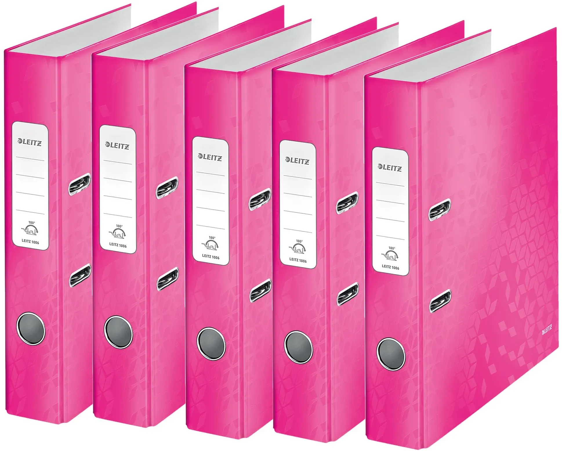 Auf Lager Versand durch AmazonLeitz Qualitäts-Ordner 180°, 5er Pack, A4, 8 cm Rückenbreite, laminierte Graupappe, Grün, WOW Serie, 10054054