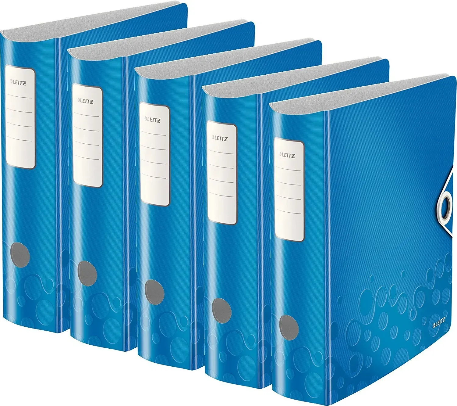 keine Angabe Versand durch AmazonVON Leitz 5er Pack Ordner A4, 100 % Recyclingkarton, 80 mm Rückenbreite, Für 600 Blatt, Marmoriert, Blauer Engel & FSC-zertifiziert, Für Schule, Studium & Haushalt, Blau, 10531035