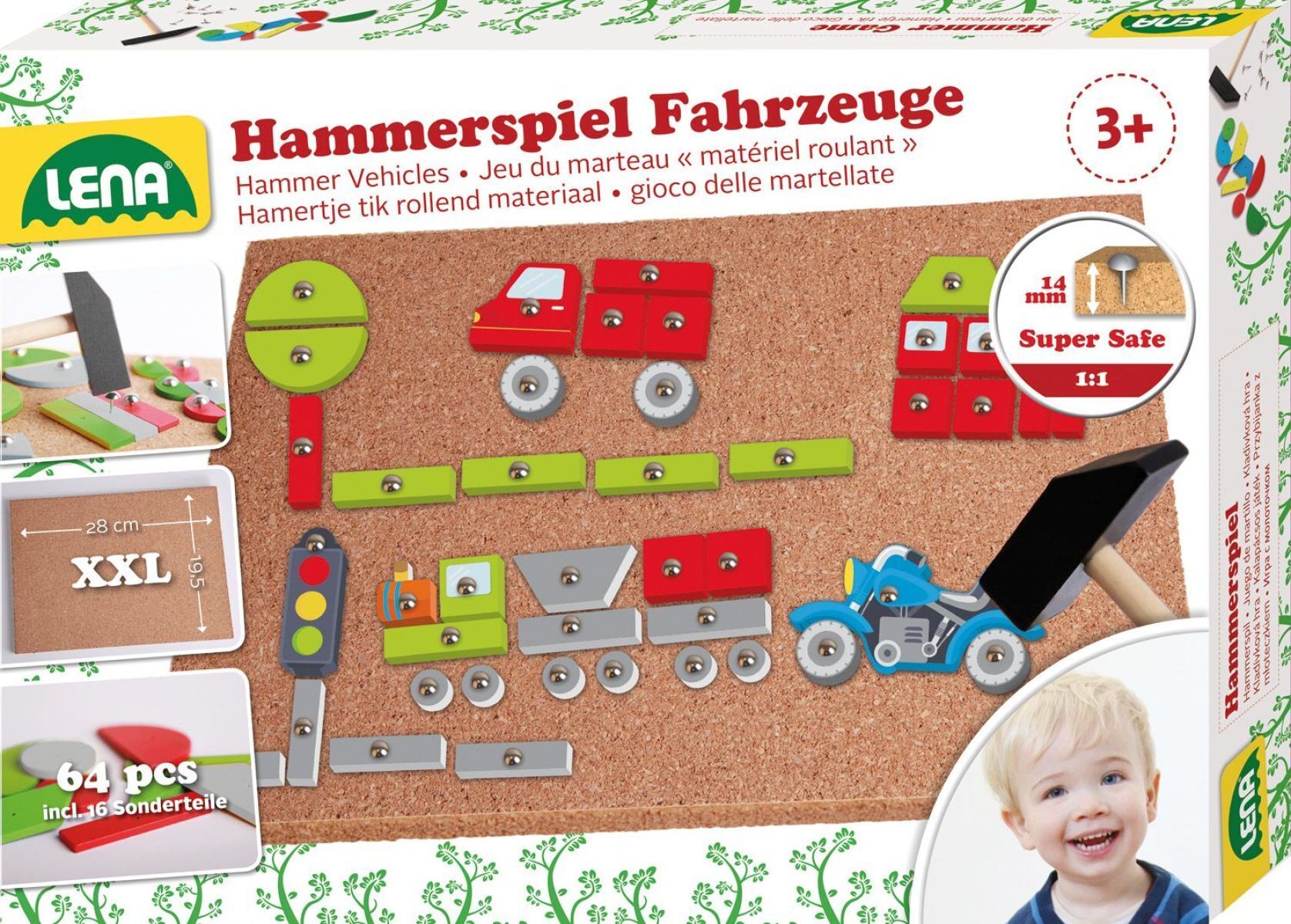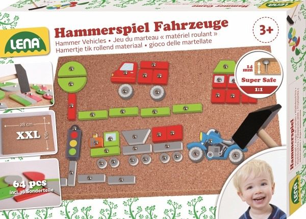 Lena - EAN: 4006942871506 - LENA Hammerspiel Fahrzeuge. Farbenfrohe Motive selbst gestalten. Inhalt: 48 bunte Plättchen, 16 bedruckte Sonderteile, Hammer und Nägel sowie Korkplatte: 27 x 20,5 cm. Fördert die Kreativität und Motorik. Geeignet für Kinder ab n. Verpackt in Faltschachtel mit Produktinformationen. - bei thalia.de - aus Yadore Produktdaten ![]() kaufland.d e Lena Hammerspiel Fahrzeuge, Faltschachtel 65826