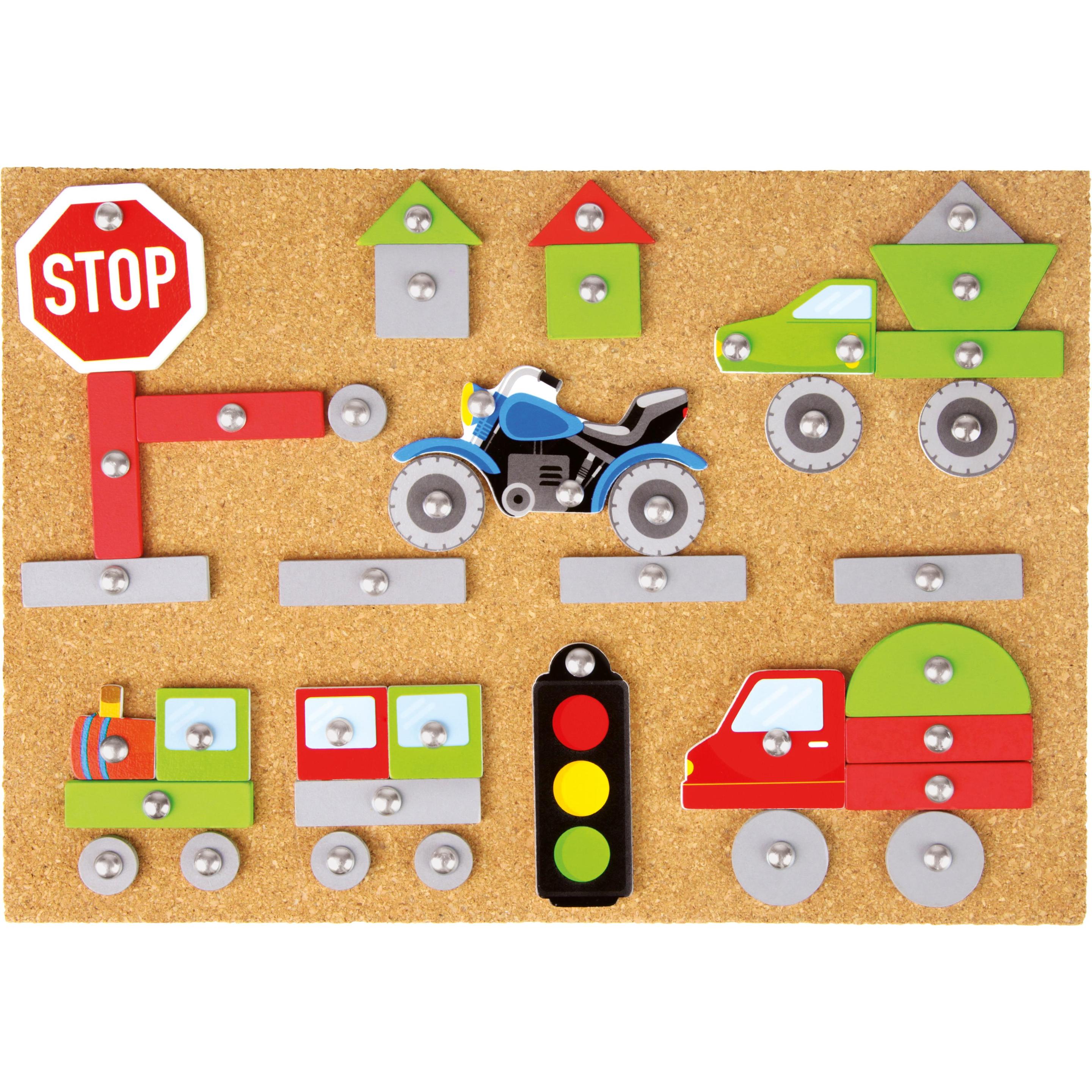 Auf Lager Versand durch AmazonLena Hammerspiel Fahrzeuge, Standard Holz Hammerspiel fu?r Kinder mit 64 Teilen, Bunte Pla?ttchen in verschiedenen Formen mit Hammer, NA?geln & Korkplatte 28 x 19,5 cm, fu?r Kinder ab 3 Jahren