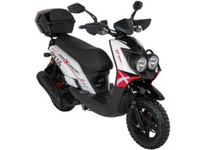 Dieses Angebot ist ein Beispiel für Angebote, die kürzlich auf dem eBay-Marktplatz in der Kategorie 177831 verfügbar waren. Bitte aktualisieren Sie die Suchergebnisse um aktuelle Angebote zu erhalten. Dieser Motorroller bietet eine bequeme und stilvolle Fortbewegungsmöglichkeit mit Topcase und einer Geschwindigkeit von 25 km/h. ![]() Motorroller GT UNION 'PX 55 Cross-Concept', rot (weiß, rot, schwarz, schwarz), Motorroller, 25 km/h, mit Topcase, B:83cm H:112cm L:192cm