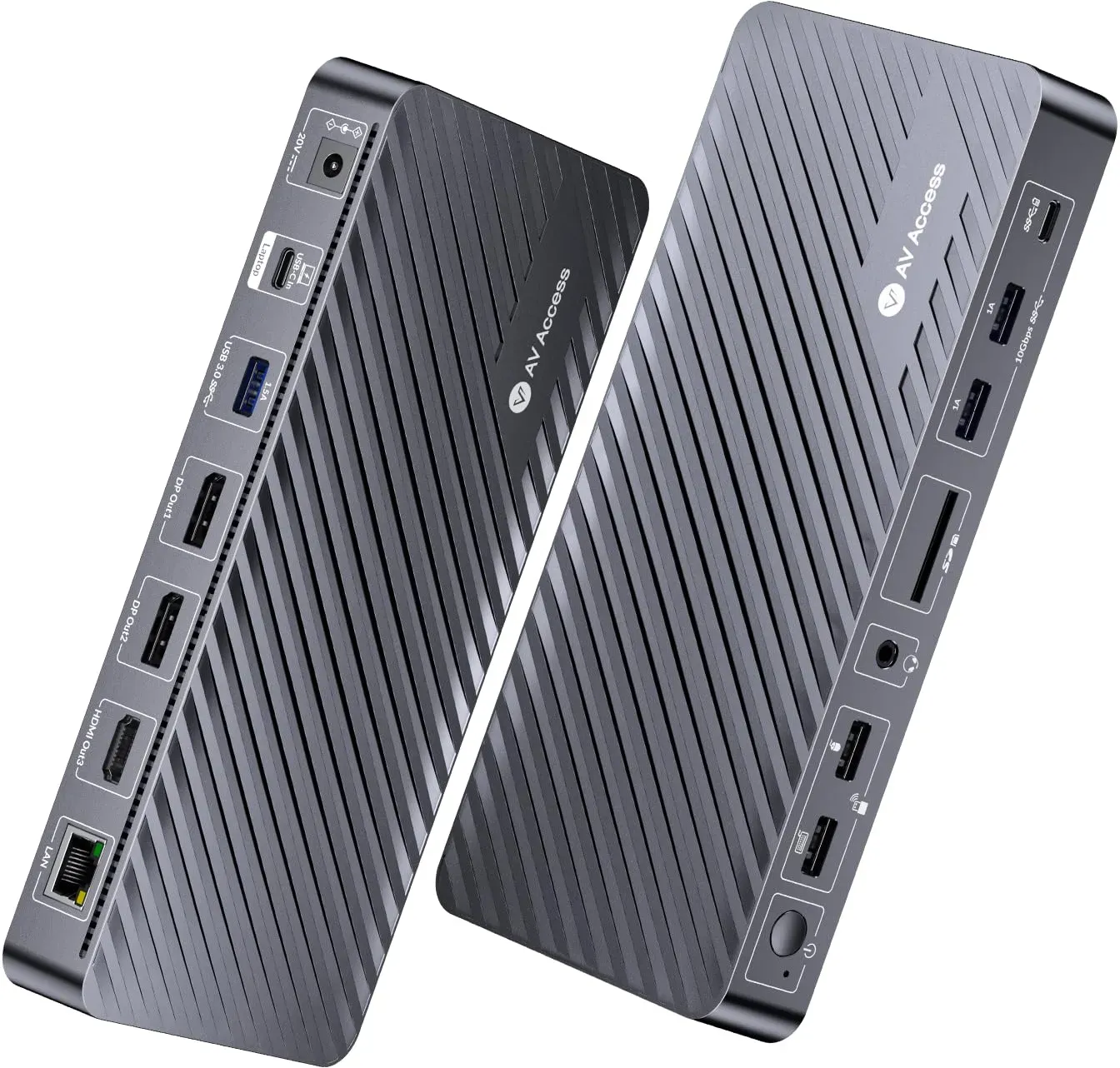 Kategorie: Dockingstations - v AV Access - Drei 4K-Monitore, dreifache Produktivität Diese innovative USB-C-Dockingstation unterstützt drei 4K-Monitore (bis zu 2 4K@60Hz + 1 4K@30Hz) für effizienteres Arbeiten oder verbessertes Gaming. Hinweis: macOS kann keine erweiterten Dual-/Triple-Screens ausgeben. Treiberfrei & 100W-Ladung Genießen Sie Plug-and-Play ohne Treiber! über den vollausgestatteten USB-C-Anschluss (MST) ermöglicht dieses Laptop-Dock Triple-4K-Darstellung, 10-Gbit/s-Datentransfer und 100W-Ladeleistung alles mit einem einzigen USB-C-Kabel. 12-in-1 Dockingstation für drei Bildschirme Erweitern Sie die Möglichkeiten Ihres Laptops mit 12 essenziellen Anschlüssen, darunter USB 3.0, USB 2.0, USB-C (nur Daten), Gigabit-Ethernet, HDMI, DisplayPort, SD-Kartensteckplatz und mehr perfekt für die Einrichtung eines leistungsstarken Arbeitsplatzes. 10-Gbit/s-Hochgeschwindigkeits-Datenübertragung übertragen Sie Dateien blitzschnell über 2x USB-3.0-Type-A- und 1x USB-3.0-Type-C-Anschlüsse mit rasanten 10 Gbit/s für maximale Arbeitseffizienz. Wichtige Hinweise macOS unterstützt keinen USB-C-MST (Multi-Stream-Transport). Daher zeigen Dual-/Triple-Monitore identischen Inhalt an. Die Ausgabeauflösung hängt von den Fähigkeiten Ihres Laptops und der Anzahl angeschlossener Bildschirme ab bitte prüfen Sie die Produktdetails für Spezifikationen. - 110,49 Euro bei Amazon Marketplace CE - gefunden von billiger.de Die Kensington Docking Station ist eine hochwertige 9-in-1 Lösung mit Triple 4K@60Hz oder Single 8K@30Hz Unterstützung und 85W Power Delivery. ![]() ![]() Kensington Docking Station USB C Hub (9-in-1) UH1500P EQ Triple 4K@60Hz Single 8K@30Hz Ethernet PD 85W 4xUSB 3.2 2xHDMI DP kompatibel mit Lenovo, HP, Dell, MacBook, Laptops, K34039WW