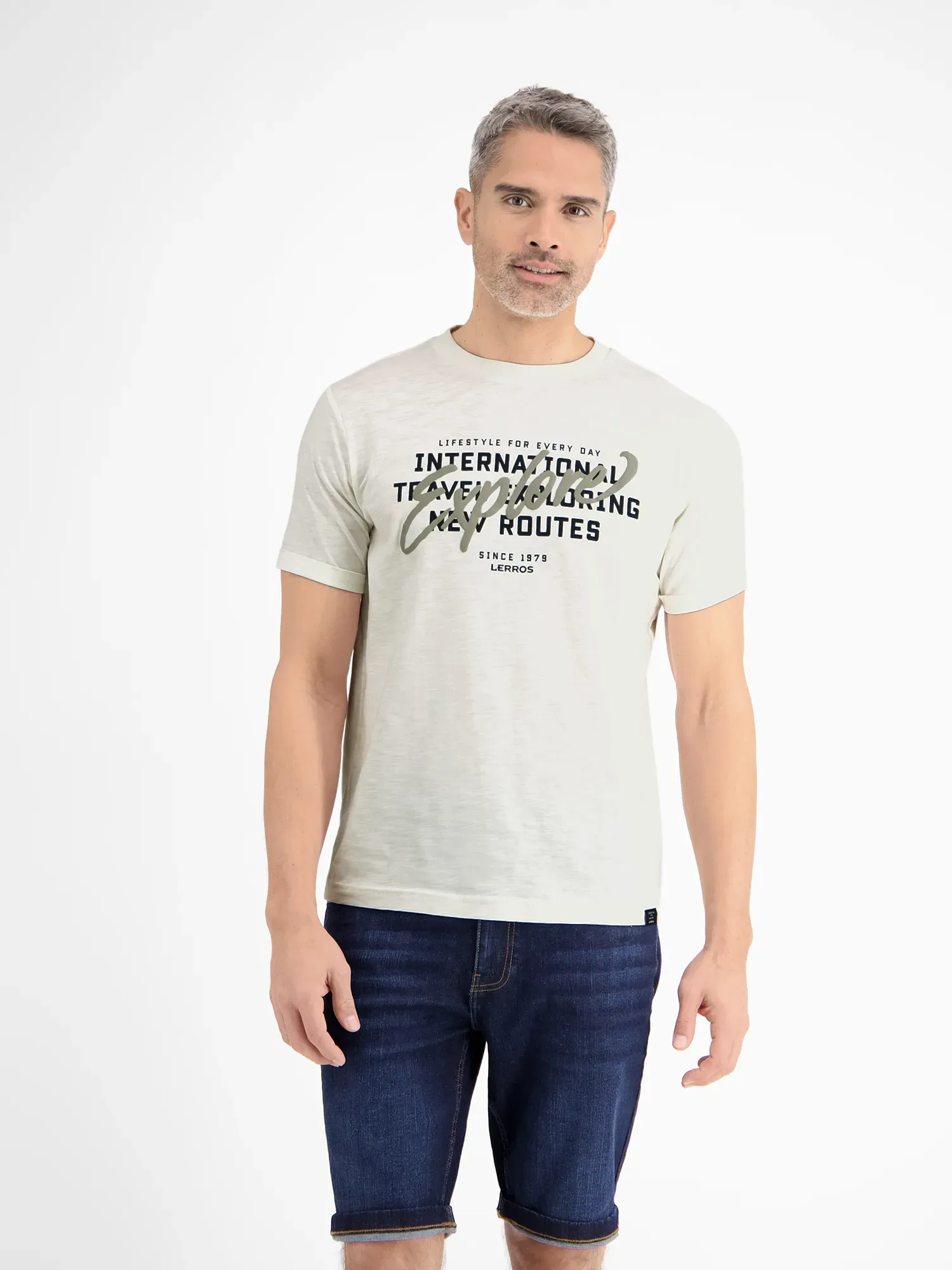 Kategorie: Herren-Shirts - Lerros - GTIN:4066718463236 - Klassischer Herren T-Shirtstyle in schmaler Passform (MODERN FIT) von LERROS mit Brustprint und geripptem Rundhalsausschnitt. Das Shirt aus weicher, hochwertiger Struktur-Baumwolle ist ein Must-Have für T-Shirt Liebhaber. - 12,99 Euro bei lerros.com - gefunden von billiger.de ![]() ![]() Lerros Herren T-Shirt mit Brustprint - Broken White - XXL