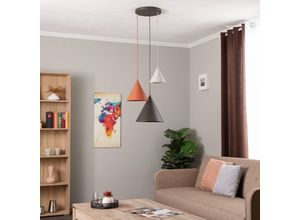 Lampen Leuchten Wohnen - - Pendelleuchte Cono mit drei weißen Schirmen, linear Die drei Schirme der Hängeleuchte Cono sind aus Stahl in zeitloser Kegelform gestaltet, in mattem Weiß gehalten und in Reihe am langen Baldachin angeordnet. Die Lichtabgabe erfolgt nach unten, sodass die Pendelleuchte ideal zur Tisch- oder Bereichsbeleuchtung einsetzbar ist. - Versandkostenfrei: false - Lieferzeit: 1 Tag - Sofort verfügbar: true - Hersteller-Farbe: matt weiß - Farbe: Weiß - - Versand mit DHL, DPD - Zahlungsoptionen: Vorkasse, Paypal, Kreditkarte, Rechnung, Nachnahme, Ratenkauf - bei Lampenwelt - gefunden von shopping24 Diese dreiflammige Hängeleuchte mit bunten, gemischten Größen ist ideal, um einen verspielten und individuellen Akzent zu setzen. ![]() Hängeleuchte Cono, dreiflammig, rund, bunt, Größen gemischt