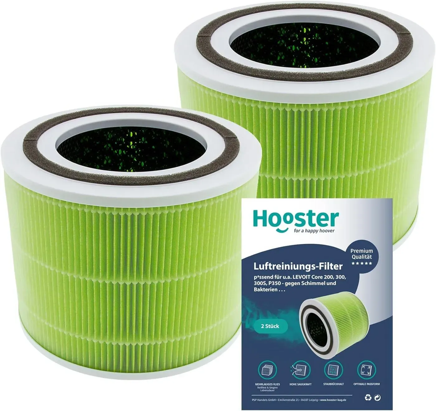 lieferbar-in 3-4 Werktagen bei dirHooster Luftfilter 2er Set Filter kompatibel mit LEVOIT H13 Core 300s / Core 300, Ersatzfilter speziell gegen Schimmel und Bakterien grün