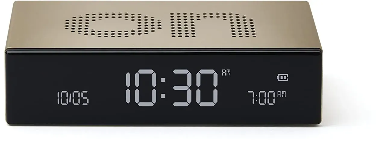 Auf Lager Versand durch AmazonLexon Flip Classic Digitaler Wecker mit umkehrbaren EIN/Aus-Seiten, wiederaufladbare Nachttischuhr mit LCD-Display, Berührungssensor für Schlummer- und Lichtfunktion ? Gold