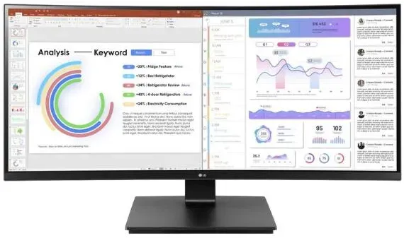 EAN: 8806096207345 - Der LG 34BA75QE ist ein beeindruckender 34-Zoll UltraWide Curved QHD-Monitor, der mit sRGB 99%, HDR10 und einer Vielzahl von ergonomischen und produktivitätssteigernden Funktionen ausgestattet ist. Dieser Monitor bietet eine hervorragende Kombination aus Technologie und Design und ist ideal für anspruchsvolle Arbeitsumgebungen, in denen Effizienz und Komfort an erster Stelle stehen.Die technischen Daten im überblick:Bildschirmgröße: 34' WQHD (3440x1440) Curved IPS Display, 3800R KrümmungFarbraum: sRGB 99% (Typ.), HDR10Anschlüsse: USB Type-C (PD 90W), RJ45Ergonomie: Neig-, Schwenk- und Höhenverstellbarer StandfußKomfort-Features: Reader Mode, Flicker Safe, Color Weakness ModeIntegrierte Lautsprecher: Mit MaxxAudio Mehr Platz für maximale ProduktivitätDer LG 34BA75QE bietet ein 34-Zoll UltraWide QHD Display mit einem Seitenverhältnis von 21:9 und einer Krümmung von 3800R. Diese größere Bildschirmfläche ermöglicht es, mehrere Dateien nebeneinander zu öffnen oder in Tabellenkalkulati... - bei beamer-discount.de - aus Yadore Produktdaten Coolblue.de bietet den Monitor zu einem etwas höheren, aber immer noch fairen Preis an, bekannt für guten Service. ![]() LG 34BA75QE-B