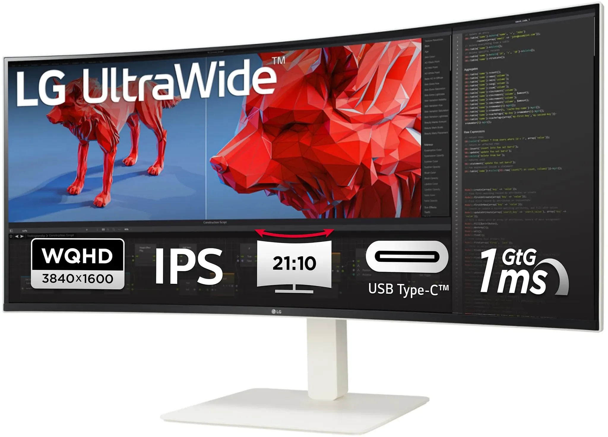 LG - EAN: 8806084903235 - LG UltraWide 38WR85QC-W gebogener Monitor bietet ein immersives Ultrawide-Erlebnis und präzise Nano IPS-Farben für kreative Arbeit und flüssiges, reaktionsschnelles Gaming. Größe: 38 Auflösung: 3840 x 1600 (WQHD+) Bildwiederholfrequenz: 144Hz Paneltyp: Nano IPS Anschlüsse: 2x HDMI, DisplayPort, USB-C mit 90W USB-C Power Delivery, USB 3.0-Hub, Ethernet Besondere Merkmale: KVM switch, AMD FreeSync Premium Pro, NVIDIA G-SYNC-Kompatibilität, DisplayHDR 600, 1 ms Reaktionszeit, 98% DCI-P3 Großes Sichtfeld, hohe Farbtreue, HDR und integrierte KVM mit USB-C-Strom optimieren Workflows und steigern die Immersion, während adaptive Sync screen tearing reduziert für flüssiges Gaming und effizientes Multitasking. - bei proshop.de - aus Yadore Produktdaten Office Partner GmbH bietet den Monitor für 889.74 Euro an, was eine zuverlässige Option von einem bekannten Händler ist. ![]() ![]() LG UltraWide 38WR85QC-W Curved Monitor 96,5cm (38Zoll), Weiß