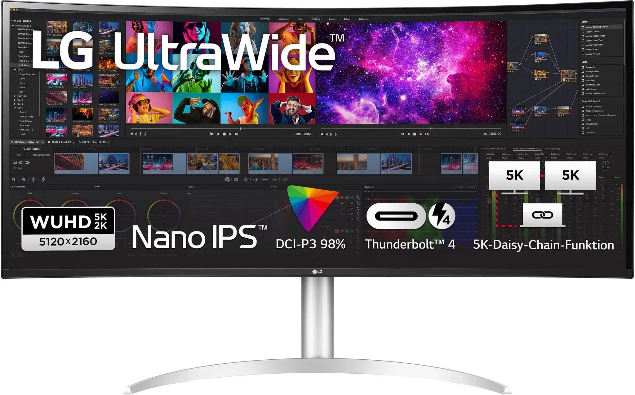 EAN: 8806087975086 - Der LG UltraWide 39,7 Monitor bietet eine beeindruckende 5K2K-Auflösung (5.120 x 2.160) und ein 21:9-Seitenverhältnis für gestochen scharfe Bilder und eine weite Sicht. HDR10 und AMD FreeSync sorgen für lebendige Farben und flüssige Bewegungen. Der gebogene Bildschirm verstärkt dein immersives Erlebnis. Mit Thunderbolt 4 und USB 3.0 für schnelle, vielseitige Konnektivität ist dieser Monitor ideal für produktives Arbeiten und Gaming. - bei lg.com - aus Yadore Produktdaten Proshop.de bietet den Monitor für 1065.28 Euro an, inklusive 96W USB-C Power Delivery, was für Laptop-Nutzer praktisch ist. ![]() ![]() 40' LG UltraWide 40WP95XP-W - 5120x2160 (5K2K) - IPS - 96W USB-C