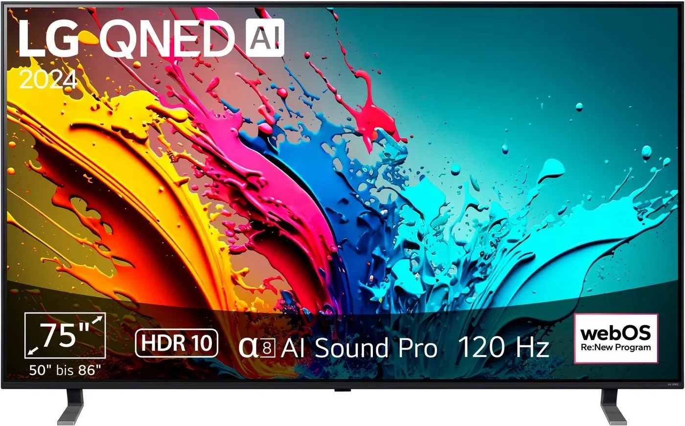 Smart-TV Fernseher-LED über 50' - EAN:8806087095500 - Der LG 75UR78006LK Smart-TV 189,0 cm (75,0 Zoll) sorgt für ein riesiges BilderlebnisOb im heimischen Wohnzimmer, in Büro- und Geschäftsräumen oder anderswo - der LG 75UR78006LK Smart-TV 189,0 cm (75,0 Zoll) bietet mit seinen Zusatzfunktionen die optimale Unterhaltung für jeden Einsatzbereich und kommt dabei angenehm schlank daher. Profitieren Sie von diesen AnschlüssenDas Modell ist mit diesen Schnittstellen ausgestattet, über die Sie zum Beispiel Geräte wie eine Spielekonsole oder einen Blu-ray-/DVD-Player koppeln können: 2x Antenneneingang, Digitaler Audioausgang, 3x HDMI, Netzwerkanschluss (LAN), 2x USB, WLAN, Bluetooth, CI+Slot.Wofür ist das Gerät empfänglich?Dank des integrierten Multi-Tuners empfangen Sie ein großes Senderangebot aus dem Digitalfernsehen, und zwar über DVB-T, DVB-T2, DVB-C, DVB-C2, DVB-S2.Was gibt es zum Klang zu sagen?Die integrierten Lautsprecher sorgen passend dazu für den richtigen Ton.Ultra-hochauflösender BildschirmUm Filme und Serien in bestmöglicher Qualität erleben zu können, ist ein gutes Bild ein entscheidender Faktor - deshalb ist das Modell mit einem 189 cm (75 Zoll) großen 4K UHD-Bildschirm ausgestattet, dessen Auflösung 3.840 x 2.160 Pixel beträgt. Damit bietet er beste Voraussetzungen zum Genuss Ihrer Inhalte. Strom sparen leicht gemacht dank Energieeffizienzklasse FDer durchschnittliche Energieverbrauch ist ein wichtiger Anhaltspunkt und hilft dabei einzuschätzen, wie viel Strom ... Dieser QNED MiniLED Smart TV bietet eine fortschrittliche Bildtechnologie zu einem guten Preis. ![]() ![]() LG 75QNED80A6A 75" 4K QNED MiniLED Smart TV