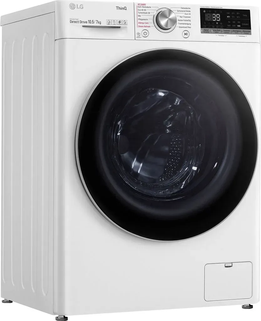 Haushalt Elektrogroßgeräte Wäschetrockner - EAN:8806084922762 - 60 cm Der Waschtrockner V5WD95SLIMB von LG ist ein absoluter Allrounder. Mit bis zu 9 kg an Wäsche kann man das Gerät zum Waschen beladen und dabei verschiedene Waschprogramme nutzen. Anschließend kann der V5WD95SLIMB bis zu 5 kg an Wäsche trocknen. AI DD - gefunden von Kelkoo Dieser Waschtrockner der Serie 7 bietet eine gute Balance zwischen Wasch- und Trockenkapazität. ![]() ![]() Waschtrockner Serie 7 10.5 kg Waschen 7 kg Trocknen TurboWash 360 LG V7WD107H2E - Weiß