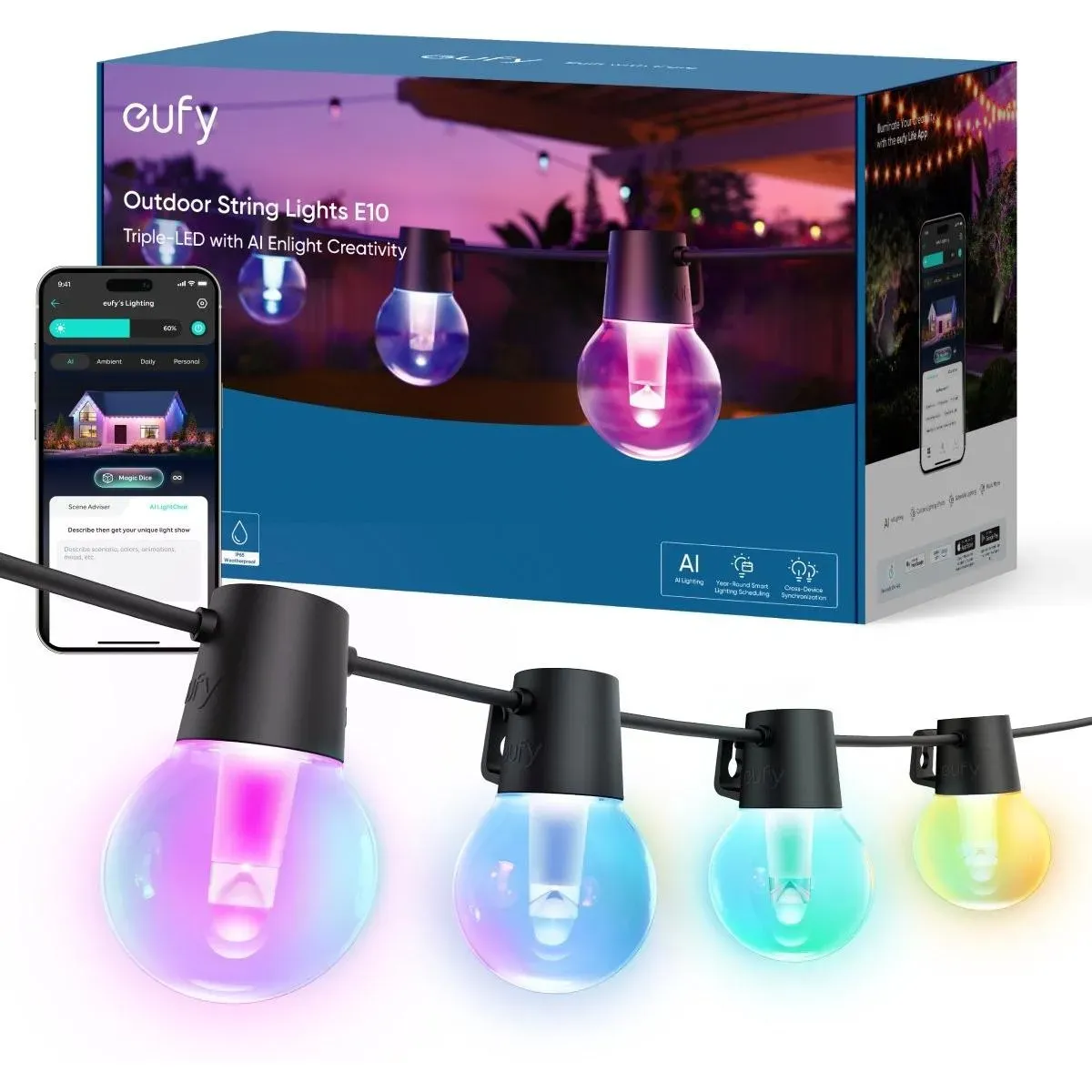 ANKER - eufy Security Außen-Lichterkette E10, 29m mit 30 Smart RGBWW LEDs, Endlose AI-Lichtmodi für Feste, Feiern, IP65 Wasserdicht für - bei de.aliexpress.com - aus Yadore Produktdaten Diese Schaftkerzen-Lichterkette von EGB bietet mit 15 Flammen eine klassische und stimmungsvolle Beleuchtung. Akkushop.d e