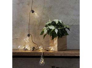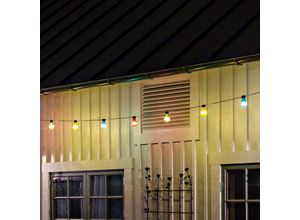 Lampen Leuchten Wohnen - - LED-Lichterkette Big Circus Filament für den Außenbereich Mit 10 kugelförmigen Lampen, in denen LEDs in Filamentoptik leuchten, ist die LED-Lichterkette Big Circus im Abstand von je 50 cm bestückt. Sie lässt eine zauberhafte Lichtstimmung im Garten oder auf der Terrasse entstehen, nicht nur für eine Party. Die Lichterkette ist mit einer 5 m langen Zuleitung mit Schuko-Stecker mit Transformator ausgestattet und gemäß IP44 vor Witterungseinflüssen geschützt. Je eine öse an der Rückseite jeder Lampe erleichtert die Befestigung. - Versandkostenfrei: false - Lieferzeit: 1 Tag - Sofort verfügbar: true - Hersteller-Farbe: schwarz transparent - Farbe: Schwarz Weiß - - Versand mit DHL, DPD - Zahlungsoptionen: Vorkasse, Paypal, Kreditkarte, Rechnung, Nachnahme, Ratenkauf - bei Lampenwelt - gefunden von shopping24 Diese Lichterkette Biergarten mit 10 bunten LED-Birnen sorgt für eine fröhliche und farbenfrohe Beleuchtung bei jeder Feier. ![]() Lichterkette Biergarten 10 bunte LED-Birnen