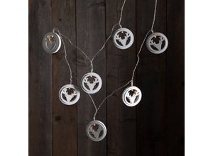 3 Händlerangebote bei billiger.de - Kategorie: Lichterketten - Konstsmide - Mit diesen kleinen filigran gearbeiteten Lichterkette, möchten wir Ihnen einen Hauch von karibischem Flair nach Hause bringen. Mit 10 LEDs, erstrahlen die Figuren von innen heraus und lassen Ihre Gäste von weißen Stränden, Meer und Urlaub unter Palmen träumen. Dekorieren Sie diese Leuchtdekoration auf dem Sideboard, Nachttisch oder der Fensterbank - durch die Energieversorgung mit 3 AA-Batterien können Sie dieses Schmuckstück flexibel aufstellen, ohne dass Kabel das Arrangement stören könnten. Dank des integrierten 6h-Timers schaltet sich das Licht automatisch ab, so dass Sie nicht mehr an das Ausschalten denken müssen. Am nächsten Tag erstrahlt das Licht wieder zur selben Zeit. Die Firma Konstsmide ist seit über 4 n auf die Herstellung hochwertiger Lichtdekorationen für den Innen- und Außenbereich spezialisiert und seit 1999 maßgeblicher Impulsgeber für innovative, langlebige und sichere LED-Lösungen. Technische Daten: LED Dekolichterkette, mit 6h Timer (6 Stunden AN/18 Stunden AUS), Schutzklasse: IP20, Birnenart: LED, Zuleitung: 30 cm, Beleuchtete Länge: 180 cm, Lampenabstand: 20 cm, Gesamtlänge: 210 cm - GTIN:7318301263837 Die LED-Lichterkette Woodworks mit 10 Hirschköpfen ist eine originelle und thematische Dekoration, besonders passend für die Weihnachtszeit oder rustikale Einrichtungen. ![]() LED-Lichterkette Woodworks mit 10 Hirschköpfen