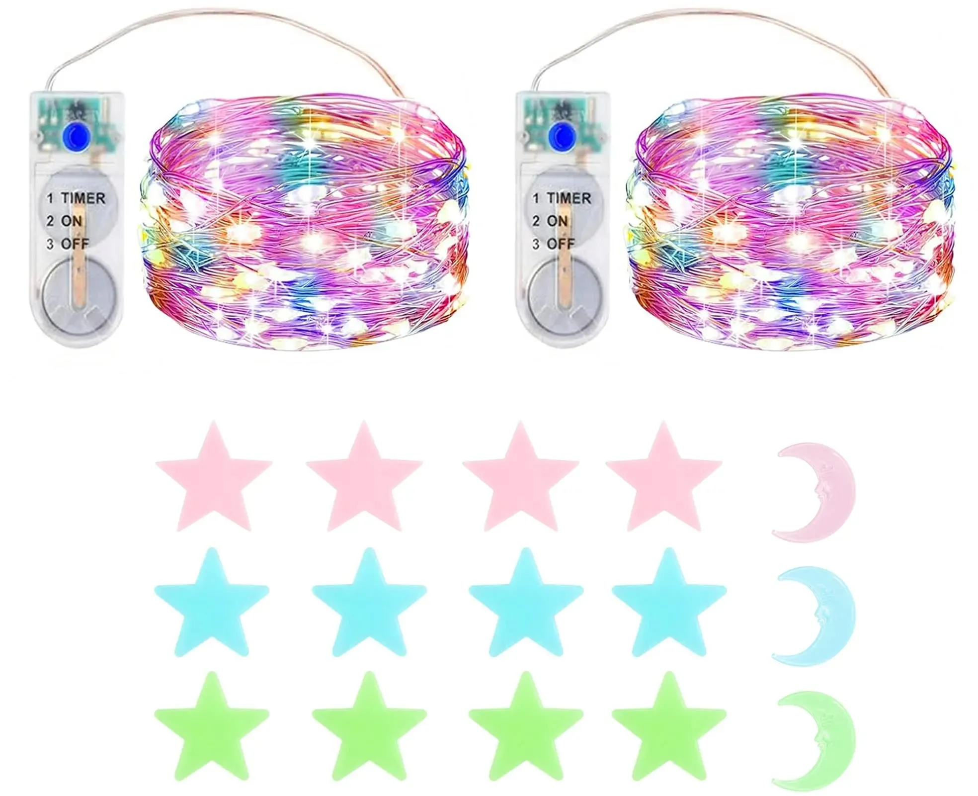 Kategorie: Lichterketten - muxijia - Mini LED Lichterkette: jedes Licht ist 6.5ft lang mit Mini-Batterie-Gehäuse und 20 leuchtende Micro LED, einfach zu verbergen und überall zu tragen, um den Anforderungen von DIY Dekorationen gerecht zu werden. Timer-Funktion: Unsere mini lichterkette klein ist mit einer praktischen Timer-Funktion ausgestattet, mit einem Drei-Positionen-Schalter (TIMER/ON/OFF). Sobald Sie den Timer einstellen, wird die batteriebetriebene Lichterkette für 6 Stunden leuchten und automatisch für 18 Stunden ausschalten, energieeffizienter. Premium Batterien 2X CR2023 im Lieferumfang enthalten. Einfach zu formen: Led lichterkette mit batterie sind aus flexiblen, extra dünnen und stabilen Kupferdrähten. Lichterketten können leicht gebogen werden und geformt zu jeder möglicher Form Sie wollen. Lichterkette sind geeignet für verschiedene Anlässe, einschließlich Innen, Halloween, Weihnachts dekorationen, Schlafzimmer, Hochzeit, Tisch, Party, Geburtstag, Handwerksprojekte und DIY Geschenke und mehr. Stern Fluoreszierende Wandtattoos: Zusätzlich zu den Lichterkette erhalten Sie auch Mond und Sternaufkleber, Die Sterne und Mond werden das Licht aufnehmen und dann in der Dunkelheit leuchten. Wandaufkleber sind sicher und zuverlässig, nicht leicht zu brechen und zu verformen, können auf flachen, glatten Oberflächen geklebt werden. Paket: 2X Mini LED Lichterkette + 12X Leuchten im Dunkeln Sterne + 3X Leuchten im Dunkeln Mond (auch ein gutes Geschenk für Ihre Kinder, ... Die BOLWEO Lichterkette ist dank IP65 Wasserdichtigkeit ideal für den AuÃ?enbereich geeignet. ![]() ![]() BOLWEO LED Lichterketten Sterne Außen, 3M 20LED Fünfzackige Batteriebetriebene IP65 Wasserdicht Lichterkette mit Timer für Garten Party Weihnachten Innen Außen Dekorationen, Warmweiß