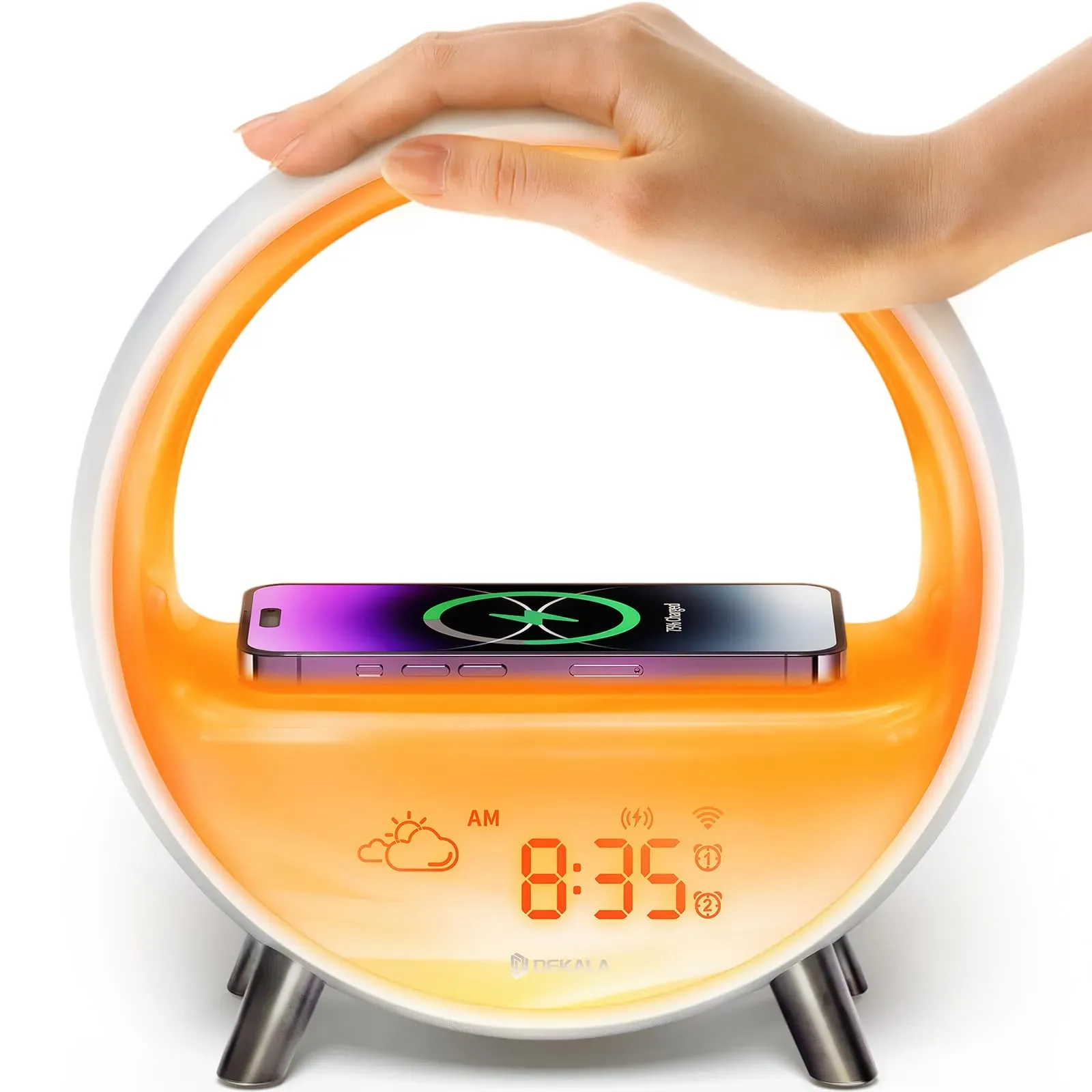 Kategorie: Wecker - dekala - 15W Kabelloses Aufladen - Lädt Smartphones und Ohrhörer bequem ohne Kabelsalat. Zusätzlich können ein zweites Smartphone oder eine Powerbank über den Typ-C-Anschluss geladen werden. Sonnenaufgangs- & Sonnenuntergangssimulation - Helligkeit steigt 0-120 Min. vor dem Alarm sanft an und sorgt für energiegeladenes Aufwachen. Sonnenuntergangslicht dimmt in 5-120 Min. mit Geräuschmaschine oder weißem Rauschen für besseren Schlaf bei Kindern, Jugendlichen und Erwachsenen. Einfache Intelligente Steuerung - Bedienung über Smart Life App oder Tasten am Gerät. App ermöglicht Weckzeiten, Snooze (5-20 Min., bis zu 6 ) und weitere Einstellungen. Funktioniert über 2,4 GHz WLAN (nicht 5G). Umgebungslicht mit 16 Mio. Farben - 9 dynamische Effekte für jede Stimmung. Ideal als Geschenk zu Geburtstag, Weihnachten, Muttertag, Vatertag oder zur Raumdekoration. 5-in-1 Smart Arches Wecker - Wecker, kabelloses Ladegerät, Umgebungslicht, Wetteranzeige und Schlafhilfe in einem. Perfekt für Schlaftraining, Meditation, Wellness, Partys, Wohn- oder Nachttischlampe. Bessere Schlafumgebung - 8 beruhigende Sounds (weißes/braunes Rauschen, Ventilator, Wellen, Frösche, Wiegenlieder, leichte Musik) helfen beim Einschlafen und blockieren störende Geräusche. Stimmungslicht & Naturklänge - 11 natürliche Klänge und 15 Lichteffekte schaffen eine entspannende Atmosphäre. Breite Lade-Kompatibilität - Qi-kompatibel mit iPhone 16/15/14/X/XS/XR/8, Samsung Galaxy S24/S23/S22 (inkl. Ultra, ... Der Philips HF3532/01 SmartSleep Lichtwecker ist ein hochwertiges Modell, das für seine effektive Sonnenaufgangssimulation und Schlafverbesserung bekannt ist. ![]() ![]() PHILIPS HF3532/01 SmartSleep Lichtwecker 16,5 Watt
