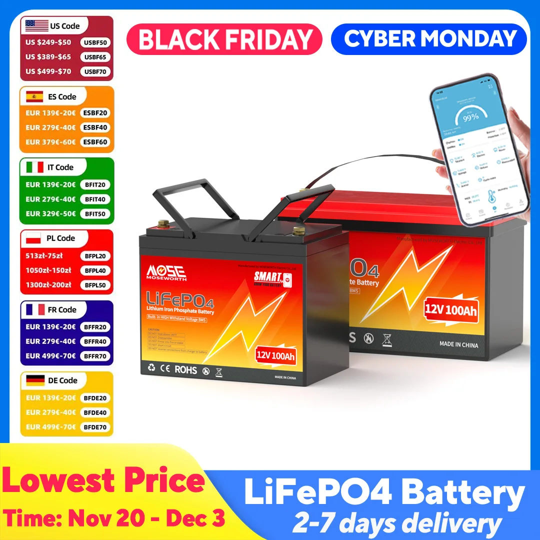 Der angezeigte Preis könnte seit dem letzten Update gestiegen sein - MOSEWORTH LiFePO4 12V 100Ah Akku 12,8V Lithiumbatterie 8000+ Zyklen mit Bluetooth BMS Klasse A für Boot-Wohnmobil-Camper - Zustand: NEW - bei Aliexpress DE - gefunden von Buycentral Eine Humsienk 12V 100Ah LiFePO4 Batterie mit 110A BMS und Tieftemperaturschutz, die eine gute Balance aus Preis und Funktionen bietet. ![]() ![]() Humsienk 12v 100Ah LiFePO4 Batterie mit 110A BMS, 1280Wh Lithium Batterie mit Tieftemperaturschutz, 15000 Zyklen, Ideal für Wohnmobile, Wohnwagen, Boote, Solar, Off-Grid