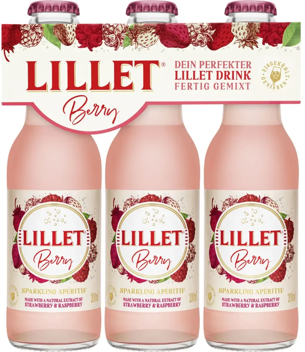 Auf Lager Versand durch AmazonLillet Berry, vorgemischter Drink aus Lillet Blanc, Erdbeer- & Himbeer-Aromen, fruchtiger Aperitif, aromatisiertes alkoholisches Mixgetränk, 3 x 200ml