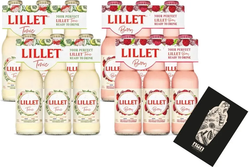 Verfügbarkeit: Lieferung in 2-3 Tage - 18,49 €/l - Kategorie: Likör & Kräuterschnaps - Lillet - GTIN:3163934304570 - Die französische Aperitifmarke Lillet steht für Tradition und Finesse. Mit dem Rosé bringt sie eine besonders ausbalancierte Variante auf Basis weißer und roter Trauben auf den Tisch. Dabei sorgen mazerierte Früchte, Orangen und ein Hauch Chinarinde für eine aromatische Tiefe. Das glänzende Rosé im Glas macht Lillet Rosé zum idealen Begleiter für stilvolle Momente.Im Bukett zeigen sich Aromen von roten Beeren, Orangenblüten und einem Hauch Grapefruit. Am Gaumen entfaltet der Aperitif eine klare Frische, gut eingebundene Säure und eine feine Länge, die stets fruchtig, leicht und ausgewogen daherkommt.Lillet Rosé überzeugt als sommerlicher Aperitif für gesellige Abende, ideal auf Eis mit einem frischen Zitronenzeste oder im Mix mit Tonic und Beeren. - 18,49 Euro bei Schneekloth Weindepot - gefunden von billiger.de Dieses Tasting Set mit Lillet Berry und Tonic Ready to Drink ist ideal, um beide beliebten Fertiggetränke zu probieren. ![]() ![]() Mixcompany Lillet ready to drink 12er tasting Set 6x Berry 6x Tonic je 200ml (10,3% vol) Lillet + Berry / Lillet + Tonic- [Enthält Sulfite]