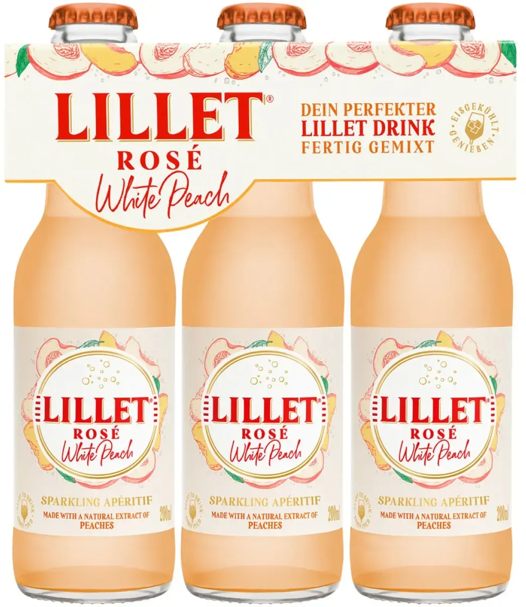 Verfügbarkeit: Lieferung in 2-3 Tage - 9,99 €/l - Kategorie: Flip-Flops - Lillet - GTIN:3163932468526 - Der Lillet Berry bringt die Eleganz des klassischen Lillet Blanc in eine prickelnde, sofort servierfertige Form. Die raffinierte Mischung aus dem bekannten Lillet Blanc und einem spritzigen Beeren-Mix, verfeinert mit natürlichen Aromen von Erdbeere und Himbeere, sorgt für ein fruchtig-frisches Geschmackserlebnis. Perfekt für Frühling, Sommer und gesellige Momente.Eisgekühlt genießen: Direkt aus der handlichen 0,2-Liter-Glasflasche oder stilvoll in einem Glas mit Eiswürfeln €“ immer ein erfrischender Genuss. Ob als Aperitif oder entspannter Sundowner, Lillet Berry ist die perfekte Wahl für unbeschwerte Genussmomente. - 9,99 Euro bei Schneekloth Weindepot - gefunden von billiger.de Das 3er-Pack Lillet Rosé White Peach Ready to Drink ist eine gute Option, um diese spezielle Geschmacksrichtung in größerer Menge zu genießen. ![]() ![]() Lillet Rosé White Peach 10,3% vol. 3x0,2 l