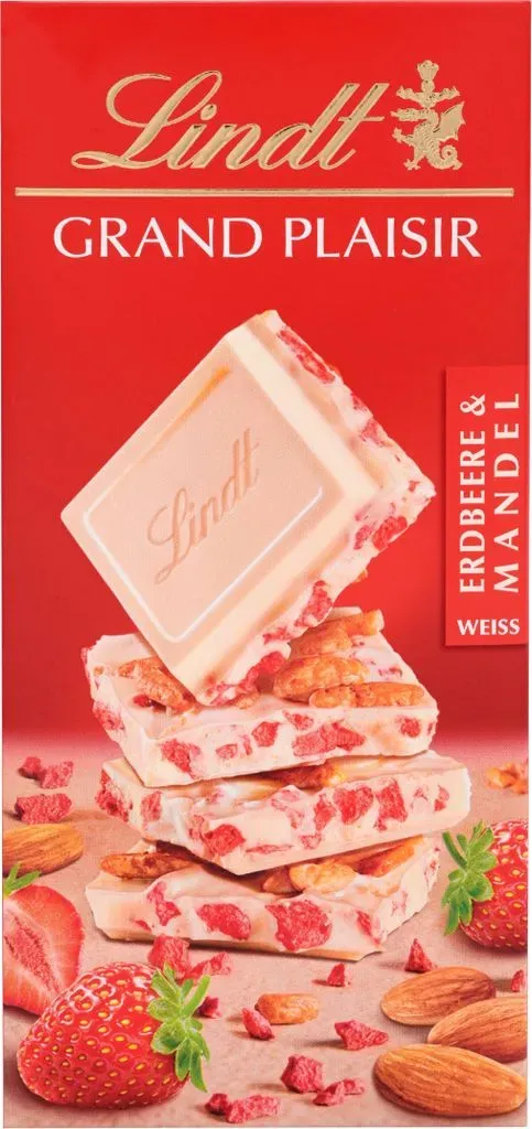 Zustand: Neu - 53,22 € / kg - Schokolade Schokoladen-Geschenkideen - Lindt Lindt & Sprüngli GmbH - - EAN: 4000539702020 - Weiße Blätterkrokant Kugeln von Lindt: Unser Doppeldreh Kugeln versüßen Ihnen die Weihnachtszeit Wenn Tannenduft das Haus verzaubert bringen unsere Doppeldreh Sorten Weihnachtsstimmung auf den bunten Weihnachtsteller Dekoration mit unseren Doppeldrehsorten sorgen für märchenhafte (Vor-)Weihnachtstage Verzaubern Sie einen ganz besonderen Menschen: Das ideale Geschenk um die Vorweihnachtszeit zu versüßen Gefüllt mit Schokolade aus feinsten Zutaten, darunter Kakaobohnen aus nachhaltigem Anbau Über 17 Schweizer Schokoladen-Expertise: Dank jahrzehntelanger Erfahrung kreieren die Maîtres Chocolatiers mit Leidenschaft und Hingabe die Schweizer Schokoladen Kreationen - 6 Händler im amazon.de Marketplace Diese Tafel kombiniert weiße Schokolade mit fruchtigen Erdbeeren und Mandeln und bietet eine interessante Geschmacksvariation. ![]() ![]() Lindt Grand Plaisir Erdbeer Mandel mit weisser Schokolade 150g
