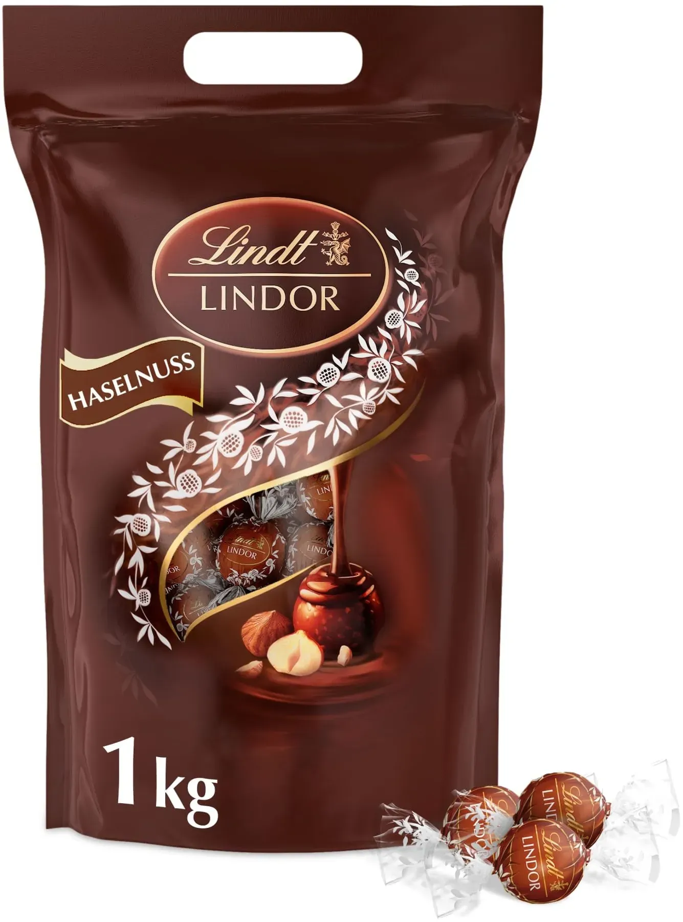 Auf Lager Versand durch AmazonLindt Schokolade | 2KG Beutel | LINDOR | Kugeln | Pralinengeschenk | Gropackung | Schokoladengeschenk | Enthlt: Milch, Wei, 60% und Haselnuss