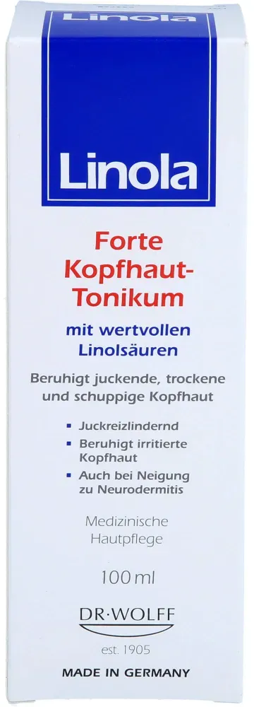 Verfügbarkeit: ca. 1-2 Werktage - 128.60 € / 1 l - Kategorie: Arzneimittel - Dr. Wolff - GTIN:4048882249502 - PZN:17556836 - Verfall: 08/2026 - 12,86 Euro bei ayvita.de - gefunden von billiger.de Ein weiteres preisgünstiges Angebot für das einzelne Tonikum von apolux.de. ![]() Linola Forte Kopfhaut-Tonikum