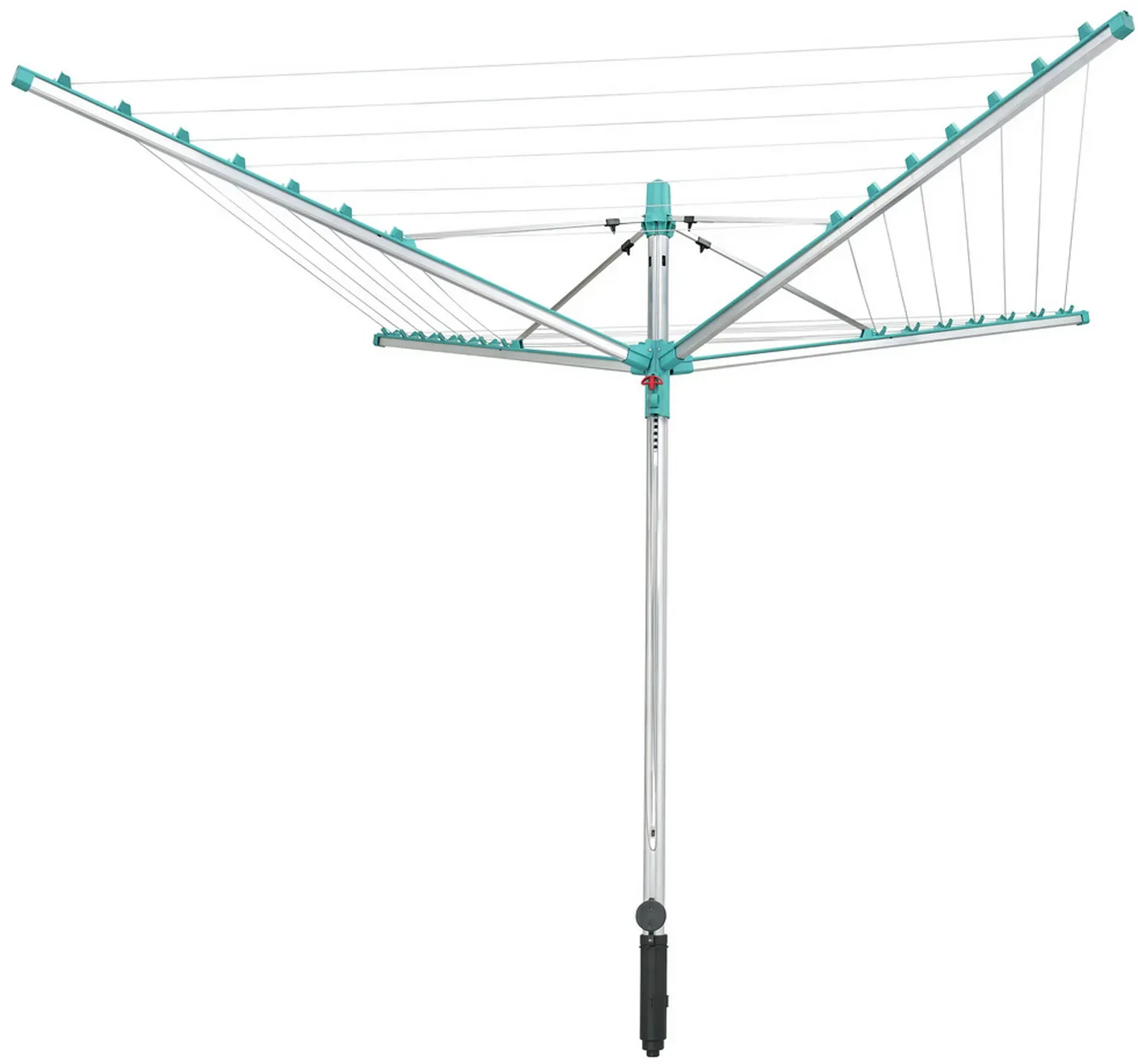 Bad Badaccessoires Wäscheständer Hängetrockner Haushaltsreinigungsmittel - EAN:4006501852854 - ALLGEMEINE BESCHREIBUNG Die Linomatic 400 Easy von Leifheit ist ein Wäscheschirm mit einem leichten, offenen Design in Türkis. Er bietet eine Leinenautomatik, die die Leinen im geschlossenen Zustand schmutzgeschützt in den Tragarmen lagert. Mit dem Easy-Lift-System lässt sich der Wäscheschirm kinderleicht öffnen und schließen. Die Leinenlänge beträgt 40 Meter, ausreichend für bis zu vier Waschmaschinenfüllungen. Die maximale Leinenhöhe beträgt 1,86 Meter, was ihn ideal für kleine Gärten und Terrassen macht. Alle Materialien sind witterungs- und UV-beständig. Eine Bodenhülse zum Einbetonieren ist im Lieferumfang enthalten. TECHNISCHE DATEN Höhe: 215 cm Gewicht: 5,1 kg Wäscheleine: 40 m Standrohr Durchmesser: 50 mm Farbe: Türkis Material: Aluminium - gefunden von Kelkoo ![]() ![]() Leifheit Wäschespinne Linomatic 400 Easy, Leineneinzug für saubere Wäsche, Wäscheschirm mit Easy-Lift-System, inkl. Bodenhülse, Wäscheständer mit 40 m Wäscheleine für 4 Wäscheladungen