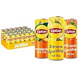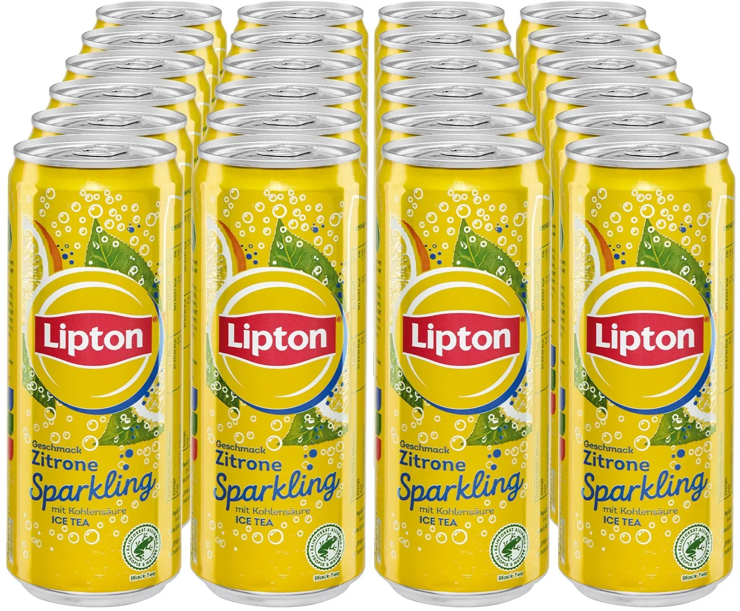 Auf Lager Versand durch AmazonLIPTON ICE TEA Sparkling Lemon, Eistee mit Kohlensäure und Zitronen Geschmack, EINWEG Dose (24 x 0.33 l) (Verpackungsdesign kann abweichen)