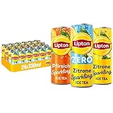Auf Lager Versand durch AmazonLIPTON ICE TEA Sparkling Lemon Zero, Kohlensäurehaltiger Eistee mit Zitronen Geschmack ohne Zucker, EINWEG Dosen (24 x 0.33 l) (Verpackungsdesign kann abweichen)