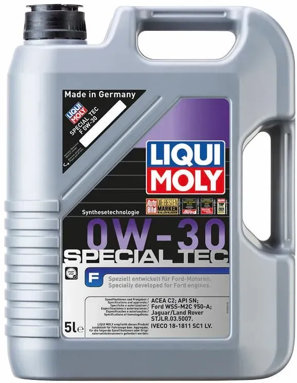 8,63 / l - Kategorie: Motoröle - LIQUI MOLY - GTIN:4100420207235 - Beschreibung Leichtlaufmotoröl auf Basis von Synthesetechnologie, das speziell für die Anforderungen von Ford-Dieselmotoren entwickelt wurde. Sorgfältig ausgewählte Rohstoffe tragen zu einer hohen Motorsauberkeit bei. Eine spezielle Verschleißschutztechnologie schützt den Motor exzellent, sorgt für minimale Reibung und für höchste Kraftstoffeinsparung. Durch die ausgeprägte Haftung des Schmierstoffes an den Metalloberflächen eignet sich das öl hervorragend für Fahrzeuge mit Start-Stop-Automatik. Aufgrund der geringen Viskosität wird der Motor beim Kaltstart schnellstens mit öl versorgt und geschützt. Dieser Hochleistungsschmierstoff erfüllt die Anforderungen, die an Motoren mit Turboaufladung und modernen Abgasnachbehandlungssystemen wie Kat und Dieselpartikelfilter gestellt werden. Einsatzgebiet Ganzjahres-HC-Synthese-Motoröl. Speziell für TDCi-Dieselfahrzeuge ab Modelljahr 2014 aus dem Hause Ford. Turbo-, Kat- und Dieselpartikelfilter-getestet. Anwendung Betriebsvorschriften der Kfz- und Motorenhersteller sind zu beachten. - 43,17 Euro bei retromotion.com - gefunden von billiger.de Ein weiteres attraktives Angebot für 5L Motoröl, das eine gute Balance zwischen Preis und Anbieter bietet. ![]() ![]() Liqui Moly Motoröl Special Tec F 0W-30 20723