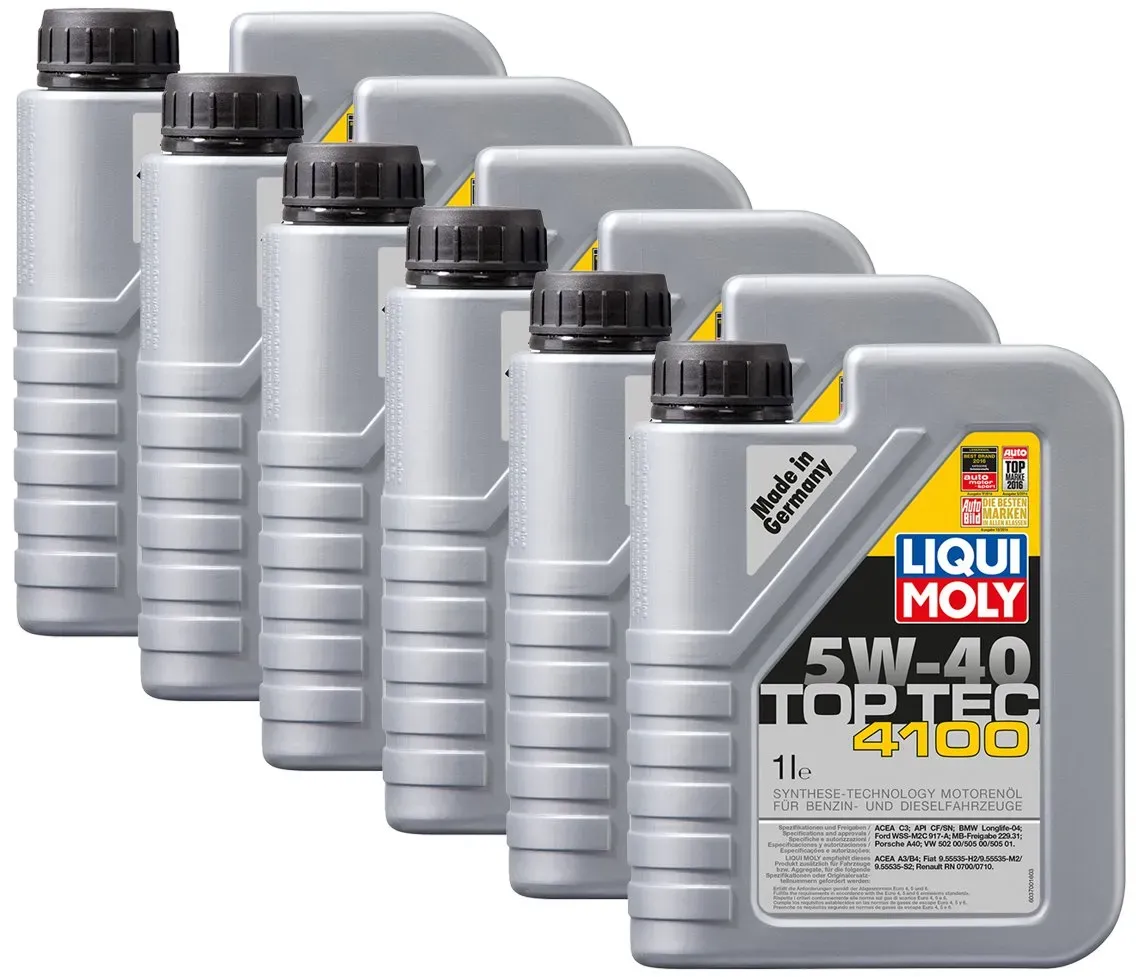 Verfügbarkeit: 2-5 Werktage - 10,73 € / 1l - Kategorie: Motoröle - LIQUI MOLY - Für diesen Artikel gibt es derzeit keine Dokumentation - 32,19 Euro bei reifencom - gefunden von billiger.de Dieses Angebot für 4 Liter ist eine preiswerte Option für einen Ã-lwechsel bei vielen gängigen Fahrzeugen. ![]() ![]() Liqui Moly Top Tec 4100 5W-40 4x1 Liter - 4