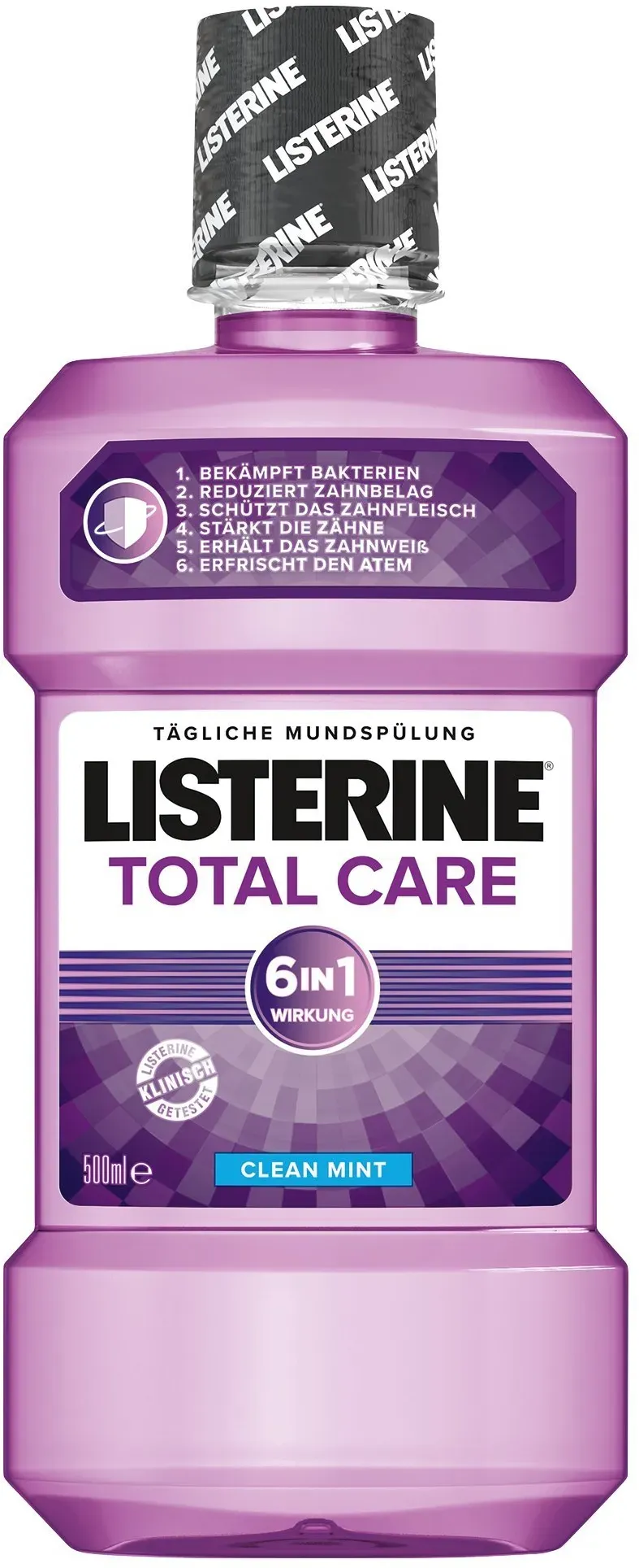 Kategorie: Zahnpflegeartikel - Listerine - GTIN:5010123730222 - Listerine Total Care 10-in-1 Vorteile Mundspülung Clean Mint 500ml - 9,69 Euro bei Joybuy - gefunden von billiger.de Eine große 1000ml Flasche der Total Care Mundspülung, die ein gutes Preis-Leistungs-Verhältnis für den regelmäßigen Gebrauch bietet. ![]() ![]() Listerine, Mundspülung, Total Care Enjuague Bucal 1000ml (1000 ml, Mundspülung)